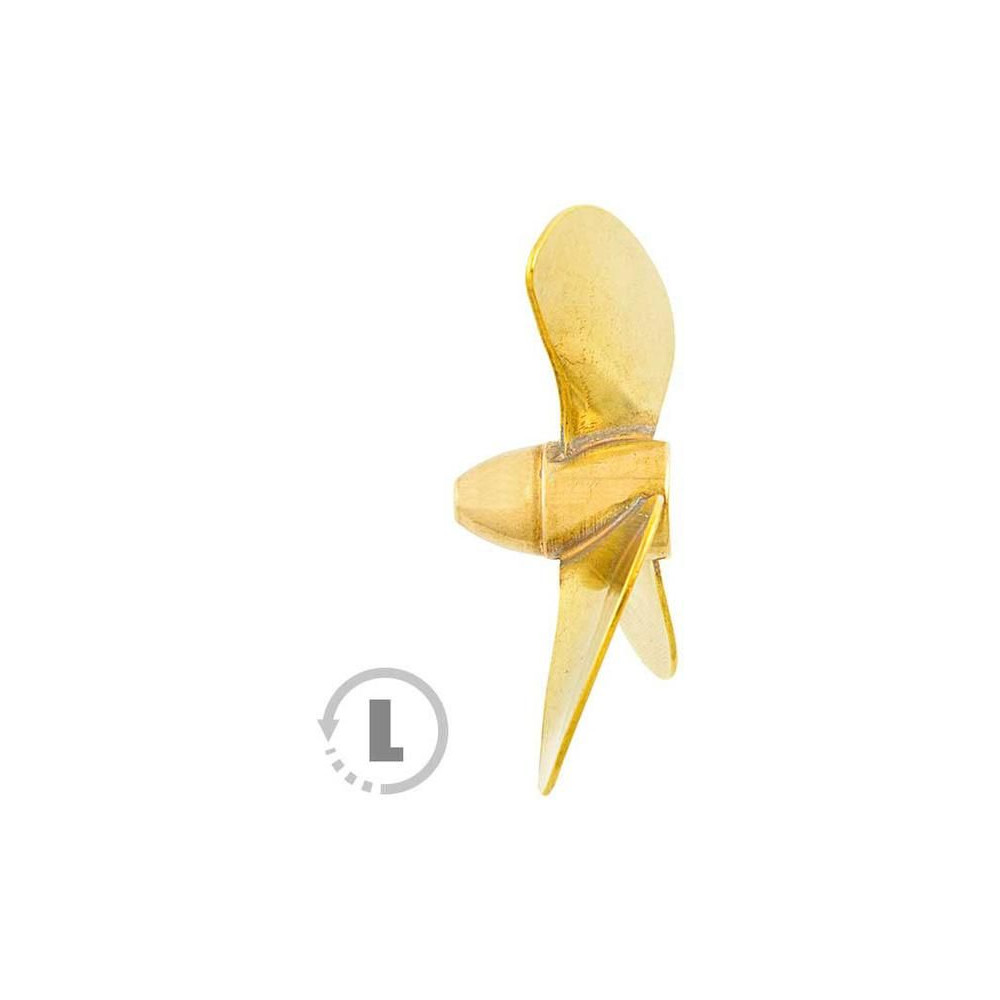 Raboesch hajócsavar 160-as osztályú 3-lapátos, 60mm átmérőjű, balos forgásirányú, tengelyrögzítés M5-ös menettel, anyaga sárgaréz, ezüsttel forrasztott.