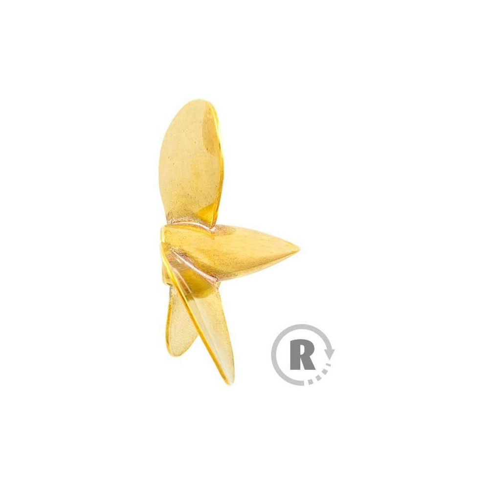 Raboesch hajócsavar 162-es osztályú 3-lapátos, átmérő 20mm, forgásirány jobbra, tengelyrögzítés M2-es menettel, anyag sárgaréz forrasztott ezüst.