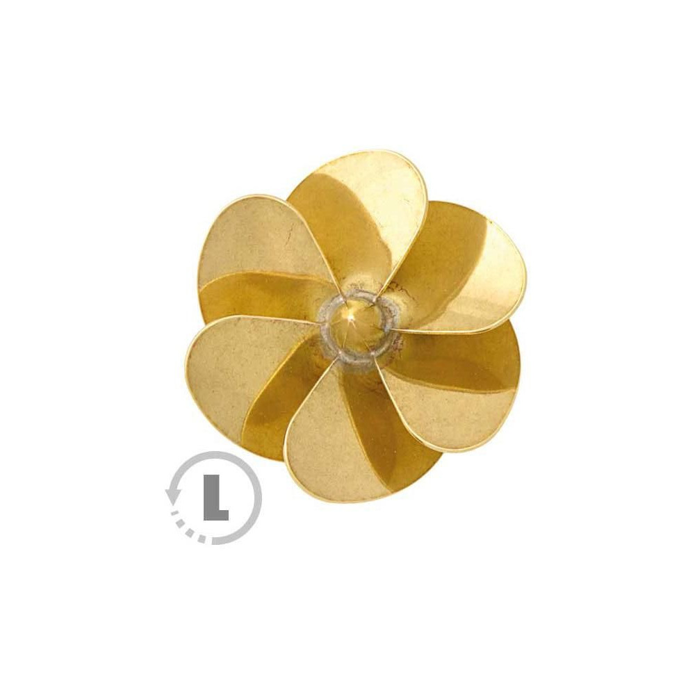 Raboesch hajócsavar 164-es osztályú 6 szárnyú, 30mm átmérőjű, balos forgásirányú, M4-es menettel ellátott tengelyrögzítés, anyaga sárgaréz, ezüsttel forrasztott.