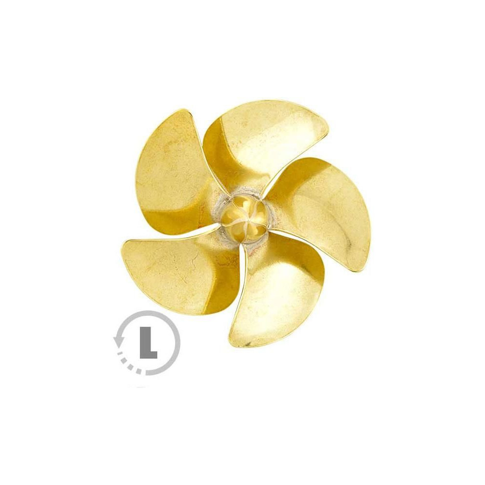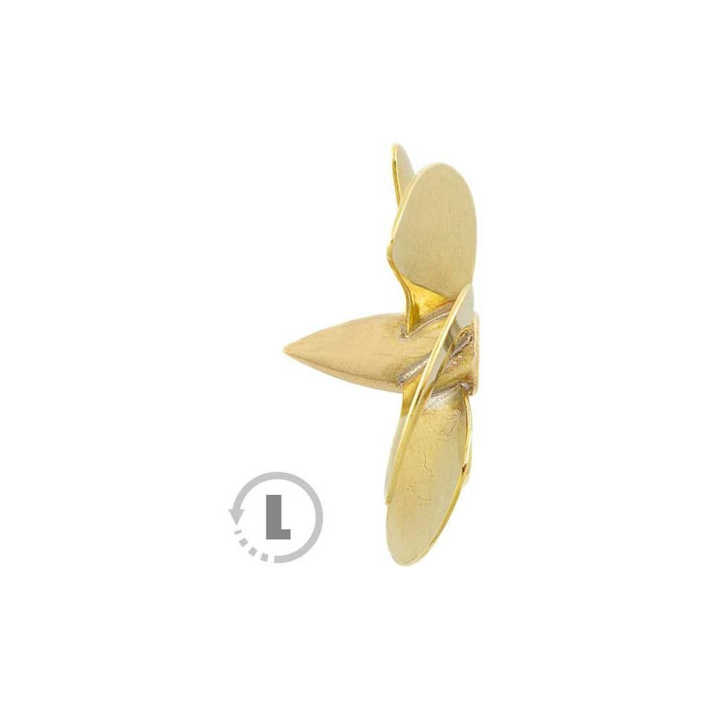 Raboesch hajócsavar 168-as osztályú 5 lapos, átmérője 20mm, balos forgásirányú, tengelyrögzítés M4-es menettel, anyaga sárgaréz, ezüsttel forrasztott.