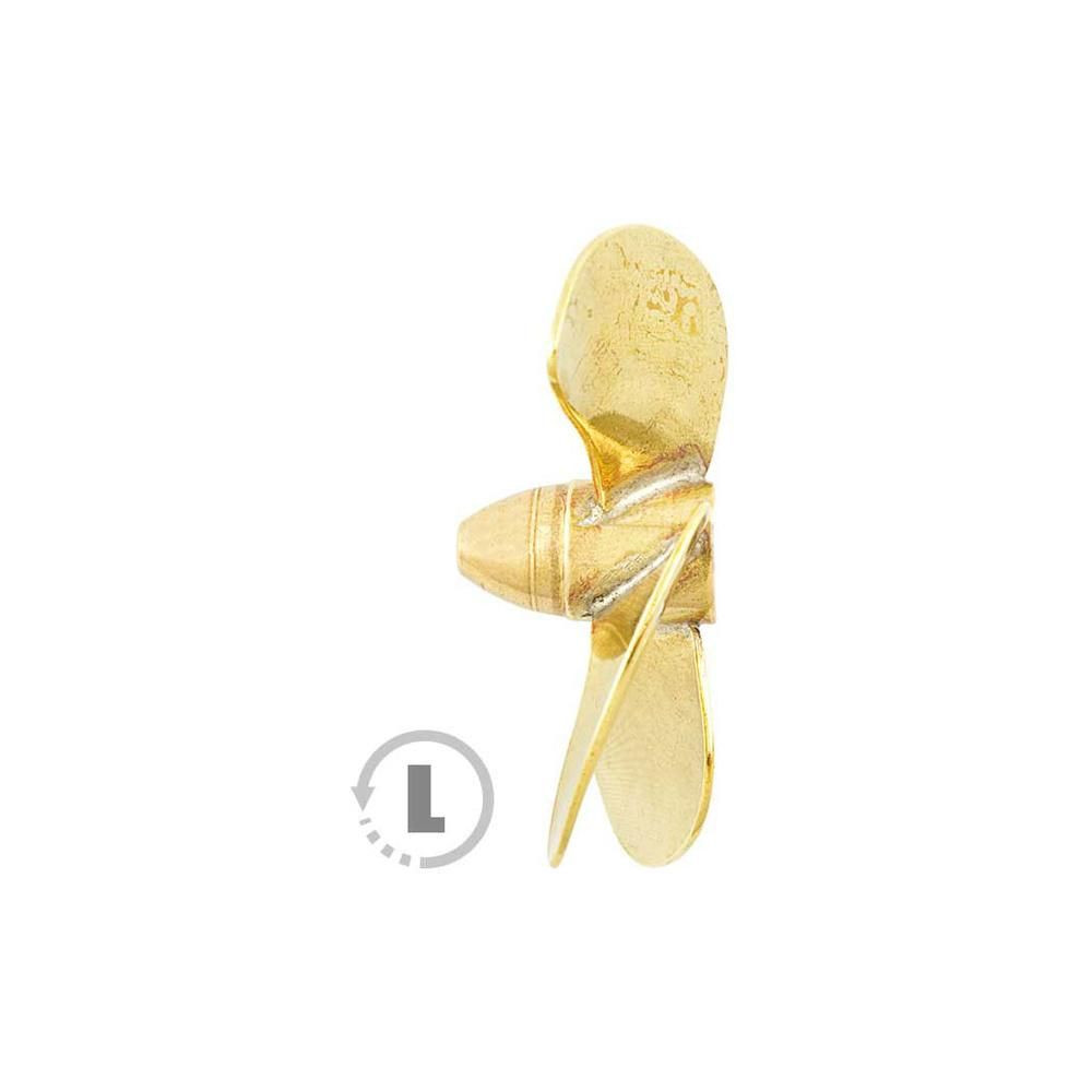 Raboesch hajócsavar 170-es osztály, 4 szárnyú, átmérő 25mm, forgásirány balra, tengelyfelvétel M2-es menettel, anyag sárgaréz forrasztott ezüst.