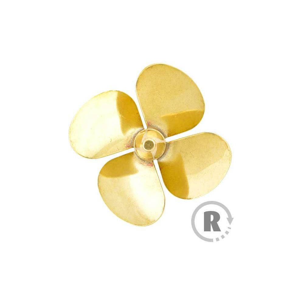Raboesch hajócsavar 174-es osztályú, 4 szárnyú, 30 mm átmérőjű, jobbos forgásirányú, tengelyrögzítés M4-es menettel, anyaga sárgaréz, ezüsttel forrasztott.