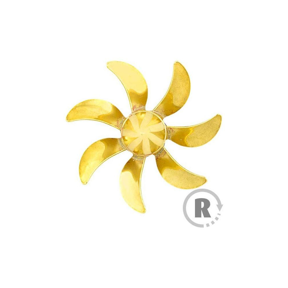 Raboesch hajócsavar 179-es osztályú 7-lapátos, átmérő 63mm, forgásirány jobbra, tengelyrögzítés M5-ös menettel, anyag sárgaréz forrasztott ezüst.