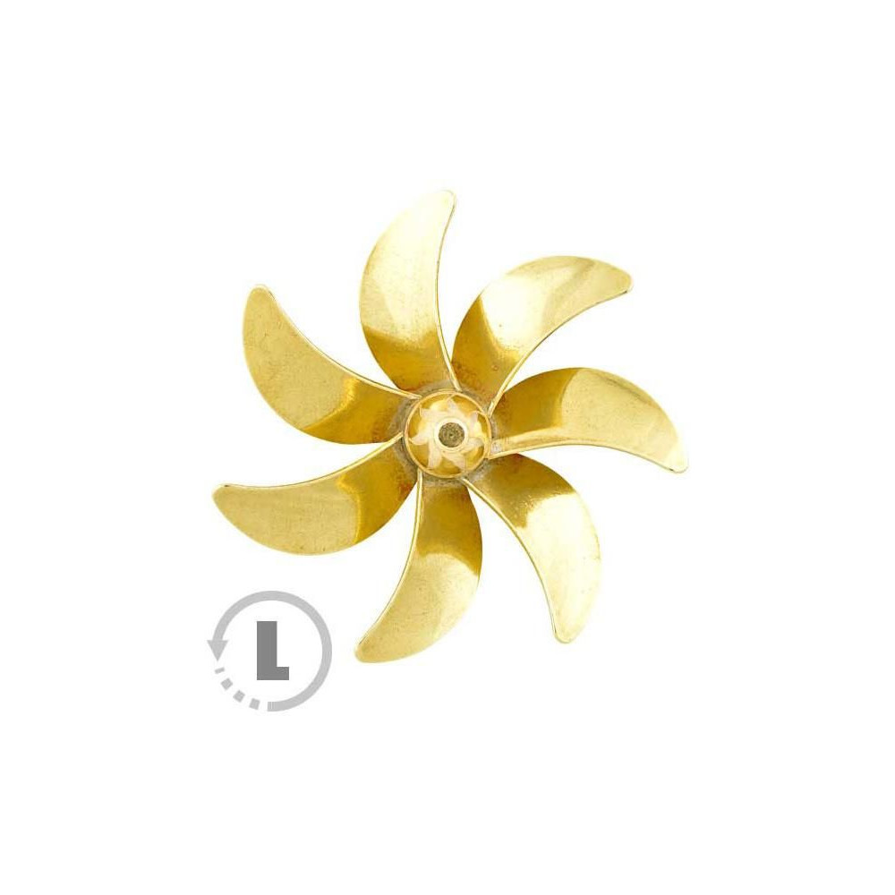 Raboesch hajócsavar 185-ös osztály 7-lapátos, átmérő 50mm, forgásirány balra, tengelyfelvétel M4-es menettel, anyag sárgaréz forrasztott ezüst.