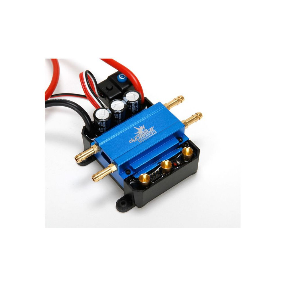 Dinamit AC szabályozó nagy csónakmodellekhez max. 160 A folyamatos árammal, vízhűtéssel 3-8 LiPo cellához. A szabályozó paraméterei a DYNS3005 programozókártyával állíthatók be.