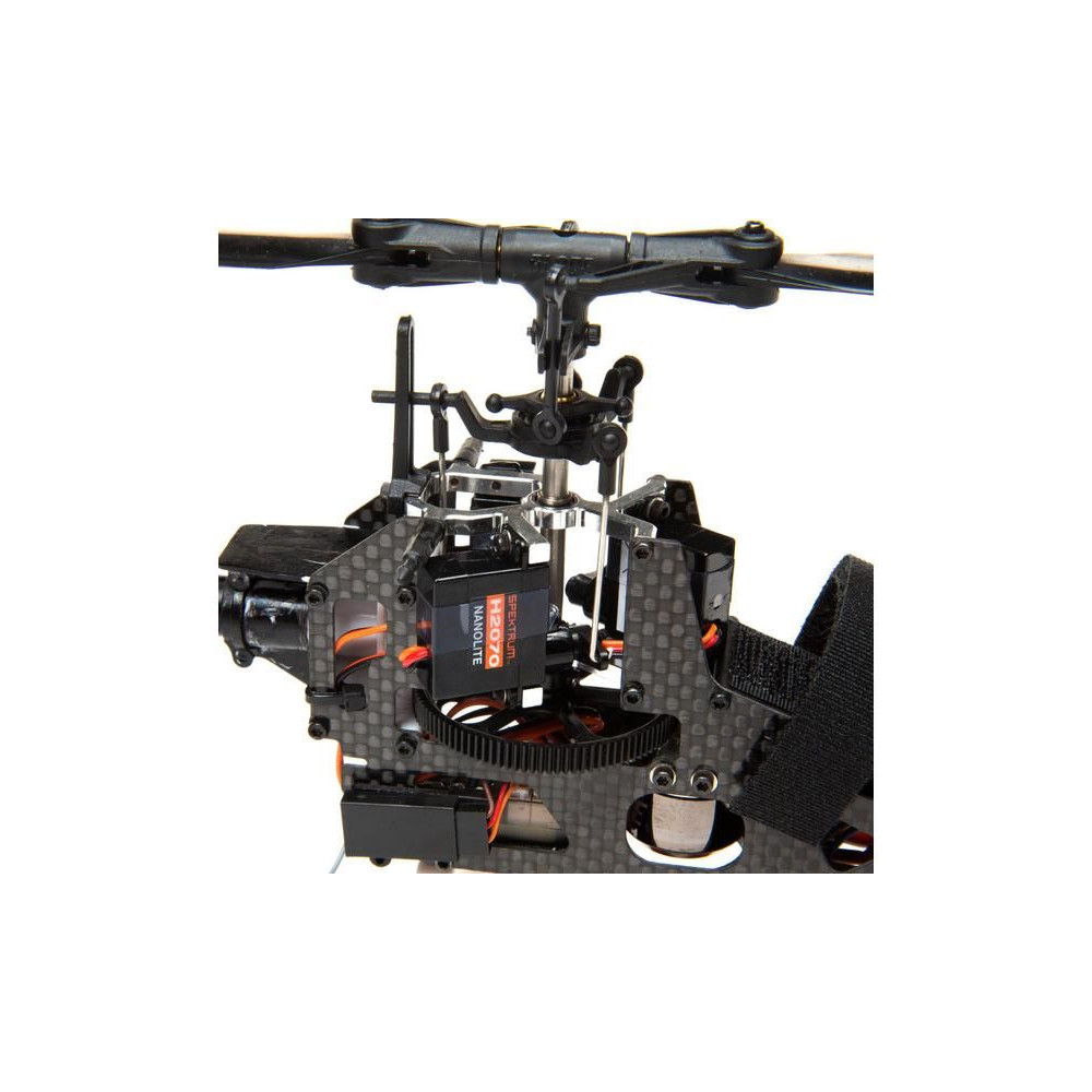 Az innovatív SAFE® technológiai rendszer fejlett funkcióinak köszönhetően a repülés sokkal kényelmesebbé vált. Még akkor is, ha ez az első irányított kollektívával ellátott helikoptere, az elektronikus stabilizálás, a Pánik funkció és az önnivelláló repülési módok nagyobb magabiztosságot adnak a középhaladó és haladó pilótáknak, hogy kezelni tudják a 3D-s beltéri és kültéri repülést. A fő váz szénszálas anyagból készült, a szervók fém fogaskerekekkel rendelkeznek, a fő lapátok pedig megerősített műanyagból készültek, így könnyebben túlélik a tanulási görbét és növelik a modell tartósságát.
