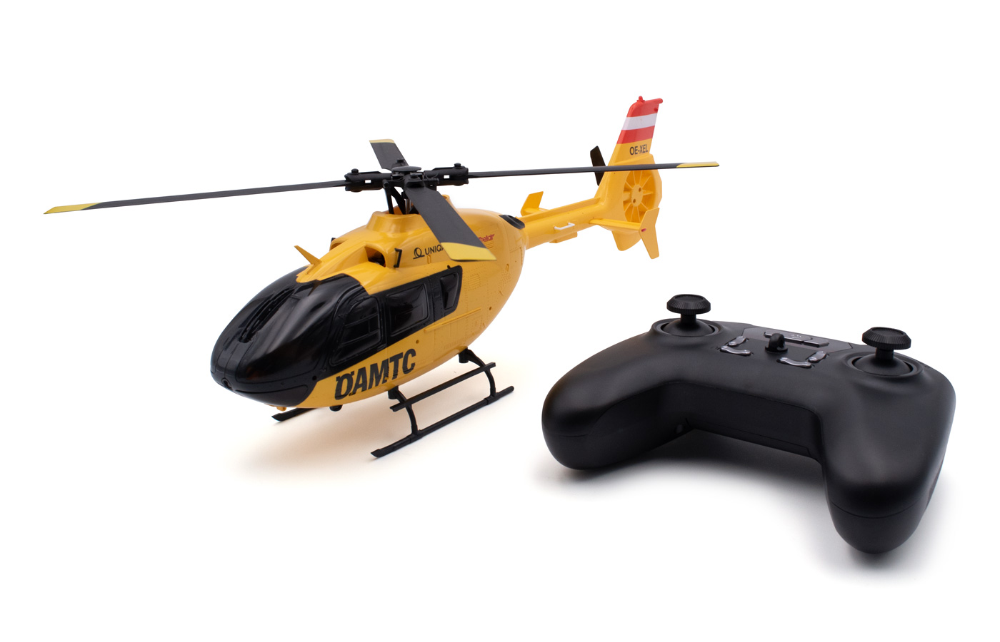 Oba nátery sú bezchybne nanesené na detailne spracovaný trup. Citlivý systém stabilizačných senzorov a optický senzor uľahčujú prvé lety začiatočníkom. Vzlet a pristátie sú možné jediným stlačením tlačidla. Skúsení piloti si zamilujú presné správanie tohto vrtuľníka v mierke. Užite si až 15 minút letu na jednu batériu.