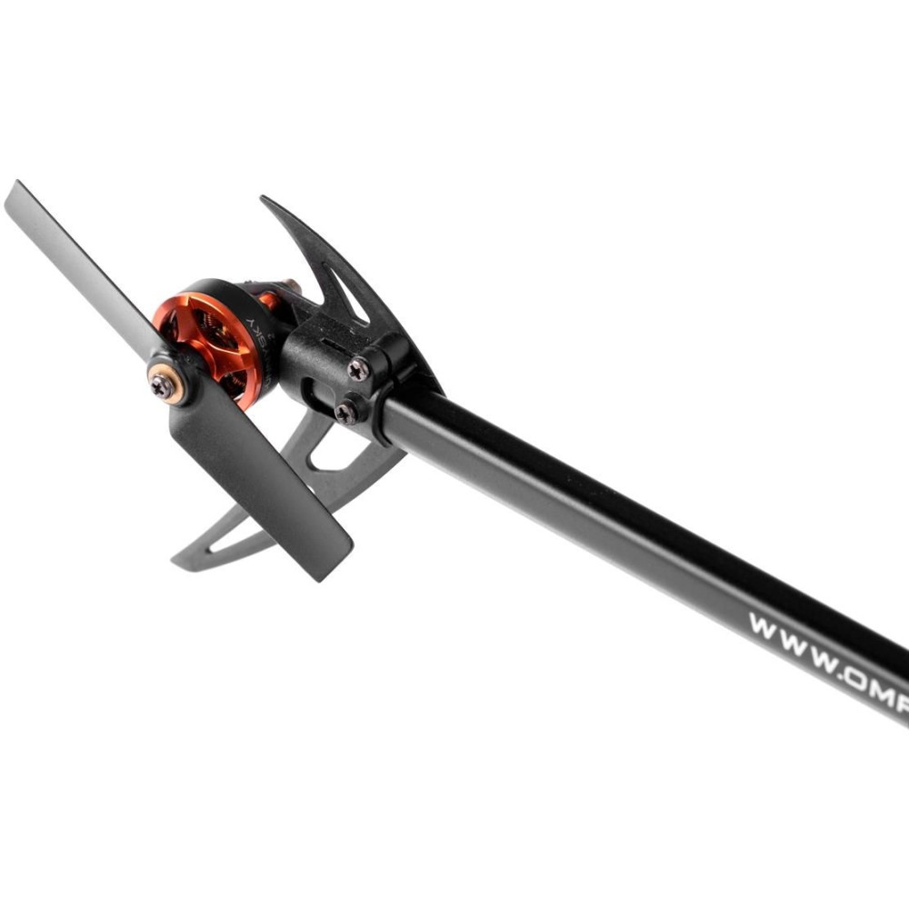 A helikopter elektronikája egy intelligens vezérlőegységből áll, amely egy integrált 3G flybarless vezérlőegységgel, egy elektronikus sebességszabályozóval és kormányzási funkcióval, valamint három DS2045 digitális pikoszervóból, fém fogaskerekekkel, amelyek a CCPM (120°) vegyes ciklusú kártyát vezérlik. A helikopter irányításához legalább egy hatcsatornás távirányítóra lesz szükséged, amelyhez egy S.BUS porttal (vagy DSM/DSMX-szel) ellátott miniatűr vevőegység tartozik. A hétköznapi repüléshez az adót nem is kell számítógépezni (az összes szükséges keveréket a vezérlőegység biztosítja), elegendő mindössze 4 csatorna "botokon" és egy ötödik csatorna egy kétállású kapcsolóval a vezérlőegység üzemmódjainak váltásához stabilizálással és 3D-vel. Természetesen a teljes értékű klasszikus és 3D repüléshez szükséged van egy számítógépes adóra, amely 2-3 állítható repülési móddal rendelkezik, legalább ötpontos kollektív görbékkel a lebegéshez és az akrobatikához, valamint egy másik móddal az autorotációhoz.