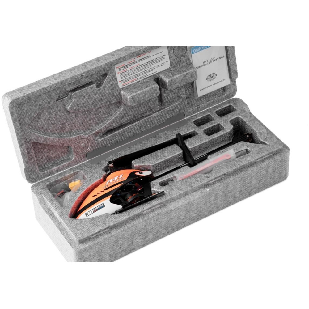 Az ARF helikopter készlet tartalma: 100%-ban összeszerelt és repülésre kész M1 V1 modell, LiPo 7.4 V 350 mAh 50C meghajtó akkumulátor, imbusz csavarhúzó, laposkulcs, töltőkábel, merev EPP hab doboz csuklós fedéllel a modell biztonságos szállításához és tárolásához, útmutató a modell kezeléséhez és a vezérlőegység beállításához.