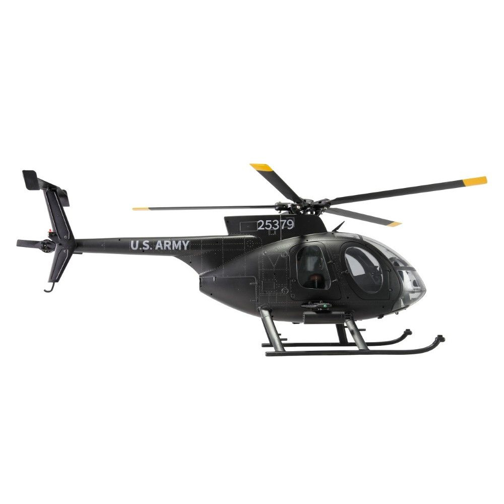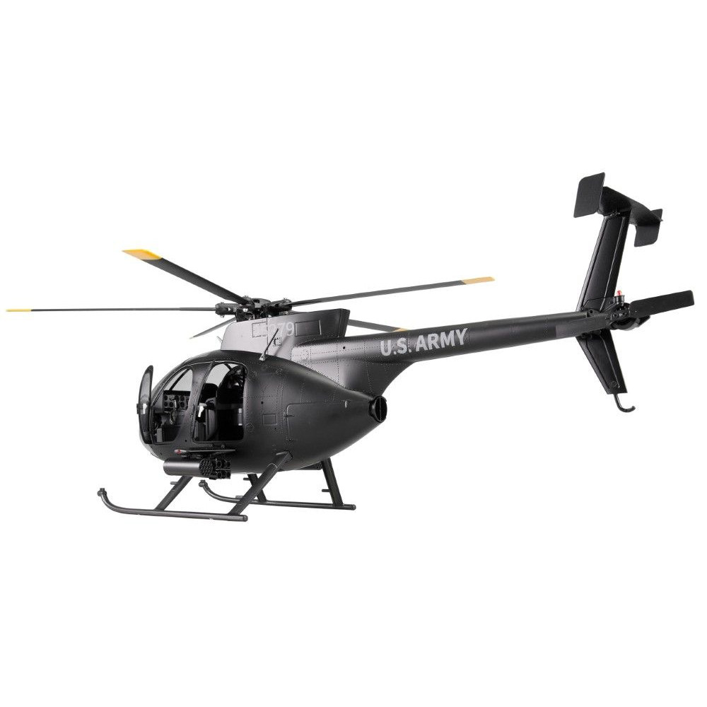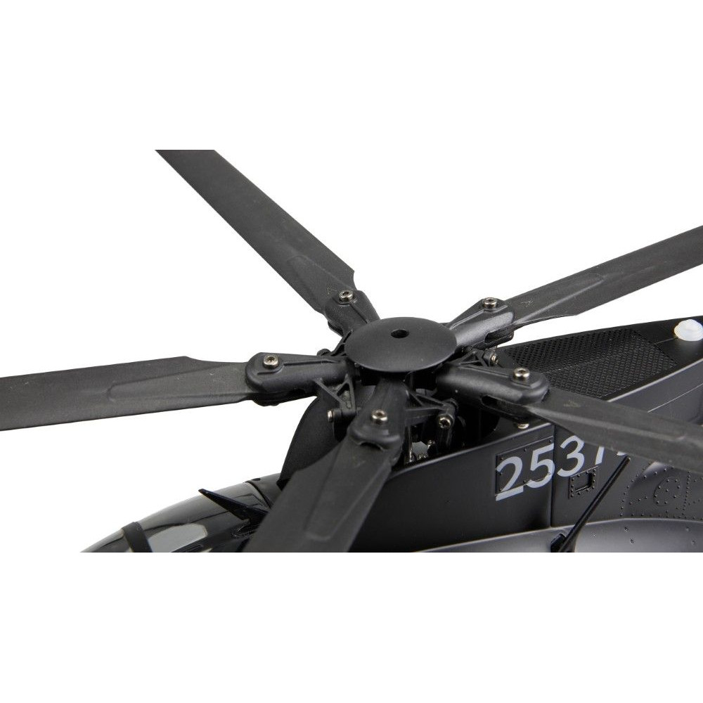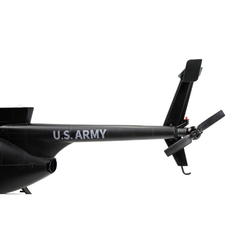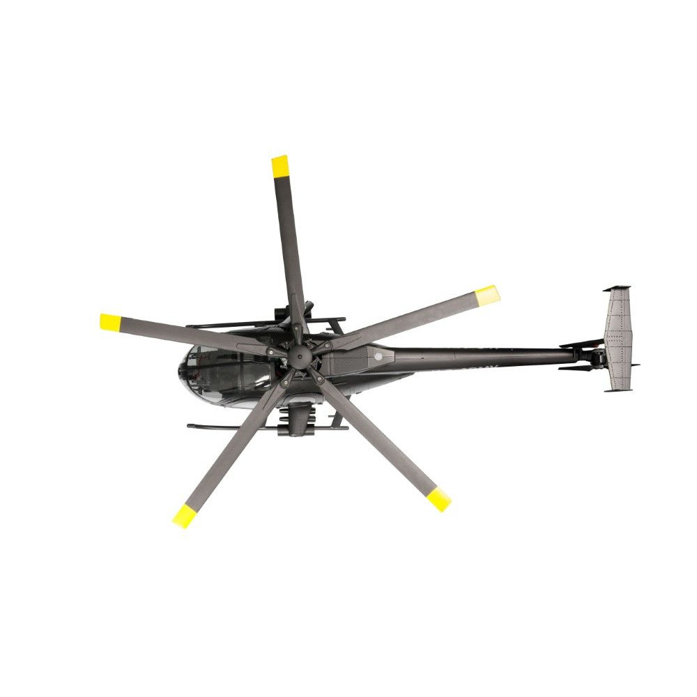 A robusztus konstrukció egy tartós műanyag alvázat ötvöz precíziós CNC-mart alkatrészekkel, mint például a részben alumíniumból készült rotorfej és imbolygótárcsa. Az ötlapátos, flybarless rotorrendszer az eredetin alapul, és nagy hatékonyságot és valósághű repülési képet biztosít. A fő- és farokrotorokat nagy teljesítményű, kefe nélküli motorok hajtják, és garantálják a megbízható teljesítményt. A modell vizuálisan is lenyűgöző a részletes, méretarányos kialakításával, beleértve a futóművet, a funkcionális ajtókat, a felszerelt pilótafülkét és az eredetihez hű festést.