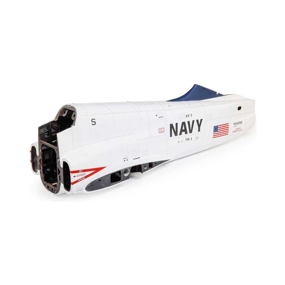 9-es Hangar Hawk/T-45 140-160N távirányítású modellrepülőgép alkatrésze: törzs hátsó része. Összeszerelt törzs hátsó része nyomtatott fóliával. Fülkefedél rögzítő reteszek felszerelve.