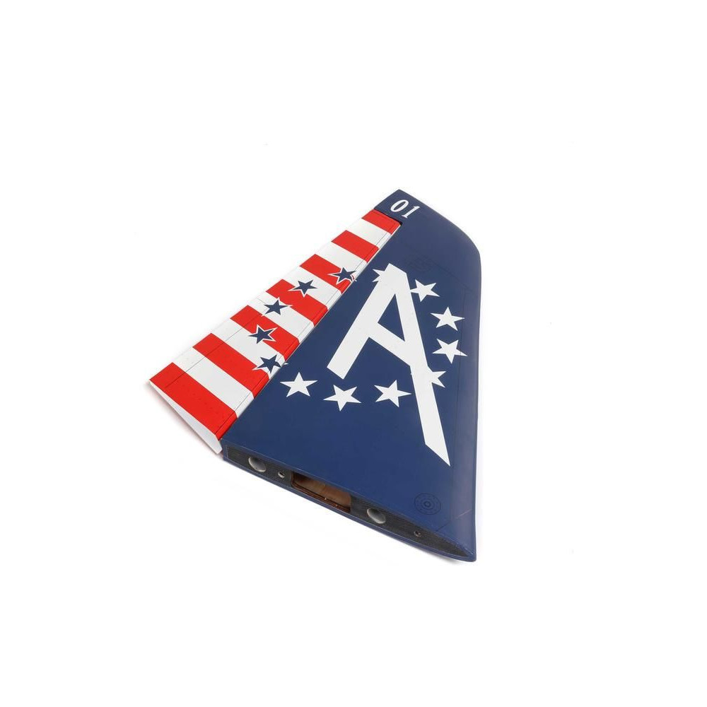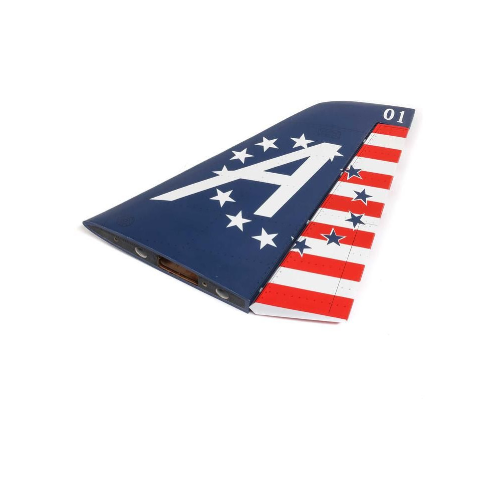 9-es Hangar Hawk/T-45 140-160N RC modellrepülőgép alkatrésze: oldalkormány, függőleges vezérsík és irányjelző fóliával bevonva.