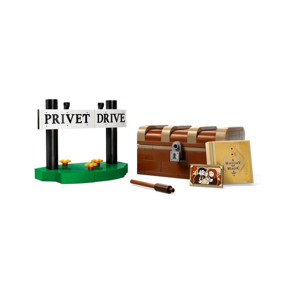 - Játékos kiegészítők - A készlet tartalmaz egy építhető bőröndöt is, amely Harry Potter és szülei portréját, A varázslat története könyvet és egy pálcát is tartalmaz.