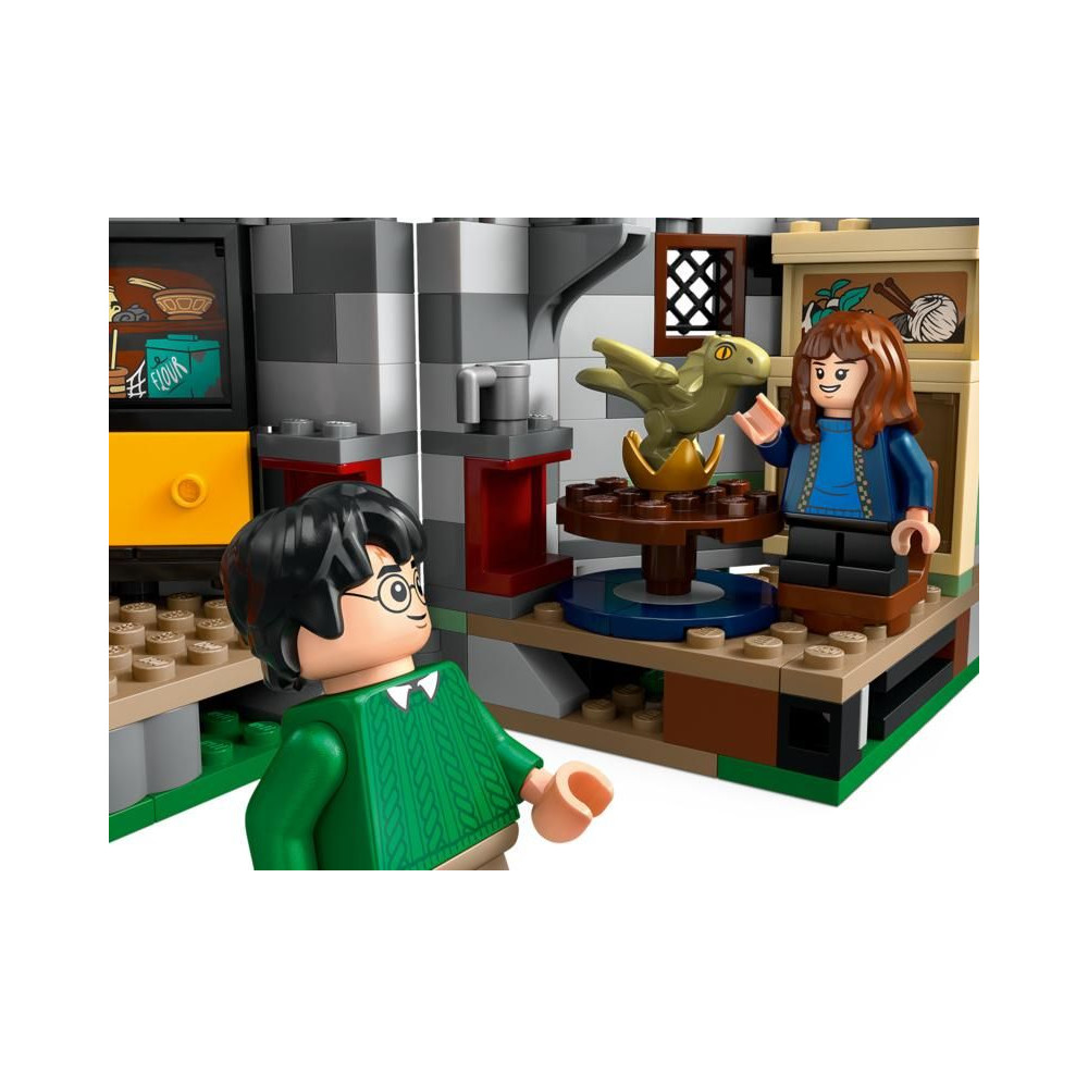 A Harry Potter világának híres helyszínét ábrázoló készlet 5 LEGO minifigurát - Harry Potter, Hermione Granger, Ron Weasley, Draco Malfoy™ és Rubeus Hagrid -, valamint egy Norbert és egy Tesak figurát is tartalmaz.