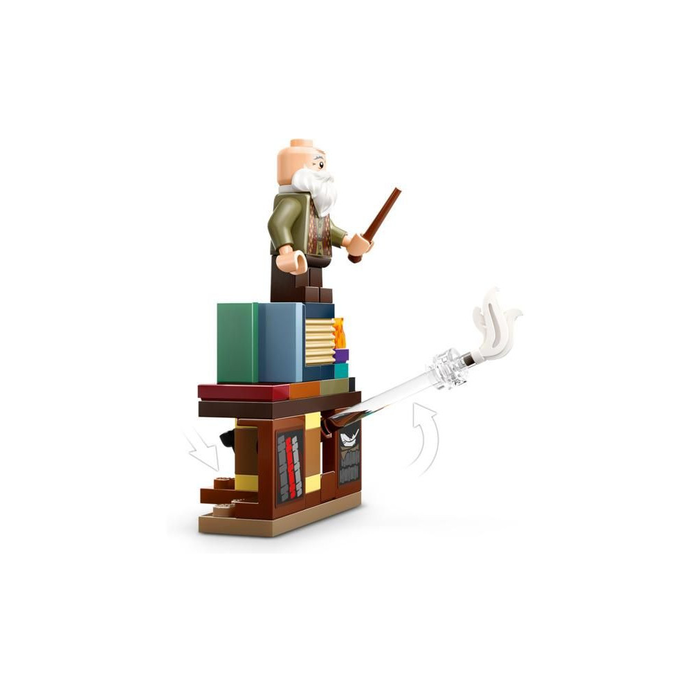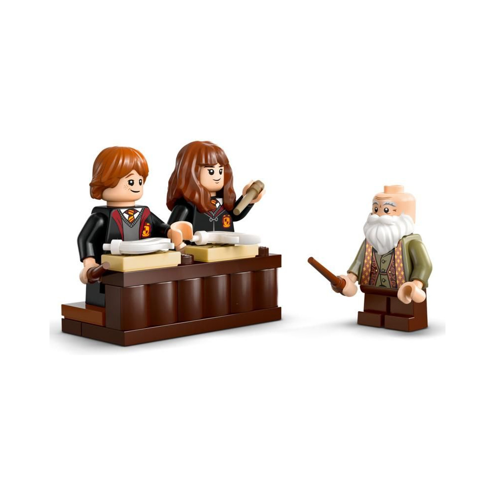 A Roxfort tantermi modellje szétszerelhető a könnyű játék érdekében. A szoba fel van szerelve egy tolllevitációs funkcióval, amely a Wingardium Leviosa varázst használja, valamint levehető padokkal a diákok számára, egy levehető táblával a varázslatok használati utasításaival és egyéb funkciókkal. Ez a varázslatos építőkészlet LEGO Harry Potter szereplőket is tartalmaz - Ron Weasley-t, Hermione Grangert és Krattkin professzort -, akikkel végtelen fantáziadús történeteket találhatsz ki.