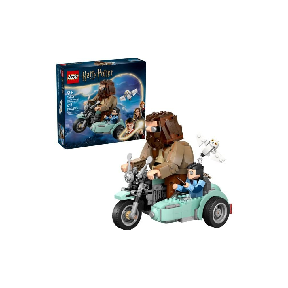 Kapaszkodj erősen, és élvezd a motorozást Hagriddal és Harryvel (76443) ezzel a varázslatos építőkészlettel lányoknak, fiúknak és a varázslóvilág rajongóinak. Ez a LEGO® Harry Potter™ kiállított készlet nagyszerű születésnapi ajándék 9 éves vagy annál idősebb gyermekek számára, amely Harry Potter, Hedwig és Rubeus Hagrid beépített, mozgatható figuráit tartalmazza egy motoron és egy oldalkocsin. A LEGO jármű kerekei forognak, így a gyerekek felidézhetik a Harry Potter és a Halál ereklyéi című film híres jeleneteit, vagy a modellt lebilincselő kiállítási darabként állíthatják ki a Harry Potter világából.