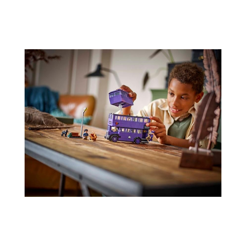 Ez a varázslatos építőkészlet 5 LEGO Harry Potter figurát is tartalmaz - Harry Pottert, Ernie-t, a Sakált, Stan Silnickát, az Alvó Boszorkányt és Silent Hillt -, hogy eljátszhasd a Harry Potter és az azkabani fogoly felejthetetlen jeleneteit. További hiteles részletek közé tartozik a megépíthető utcai lámpa, ahol Harry várakozott (és ahol Hugrabugos megijesztette!), mielőtt megérkezett a varázslómentő busz, Harry bőröndje és a Reggeli Próféta újság „Szökés Azkabanból” címmel, hogy még több kreatív szerepjátékban legyen részük.