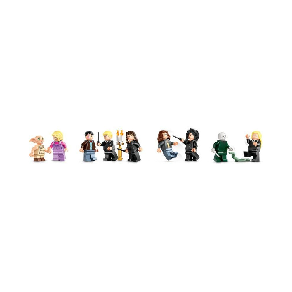 - 10 figura - Harry Potter, Narcissa Malfoy, Hermione Granger, Bellatrix Lestrange, Draco Malfoy, Lucius Malfoy, Lancashire, Voldemort nagyúr és Dobby minifigurái, valamint egy Nagini figura