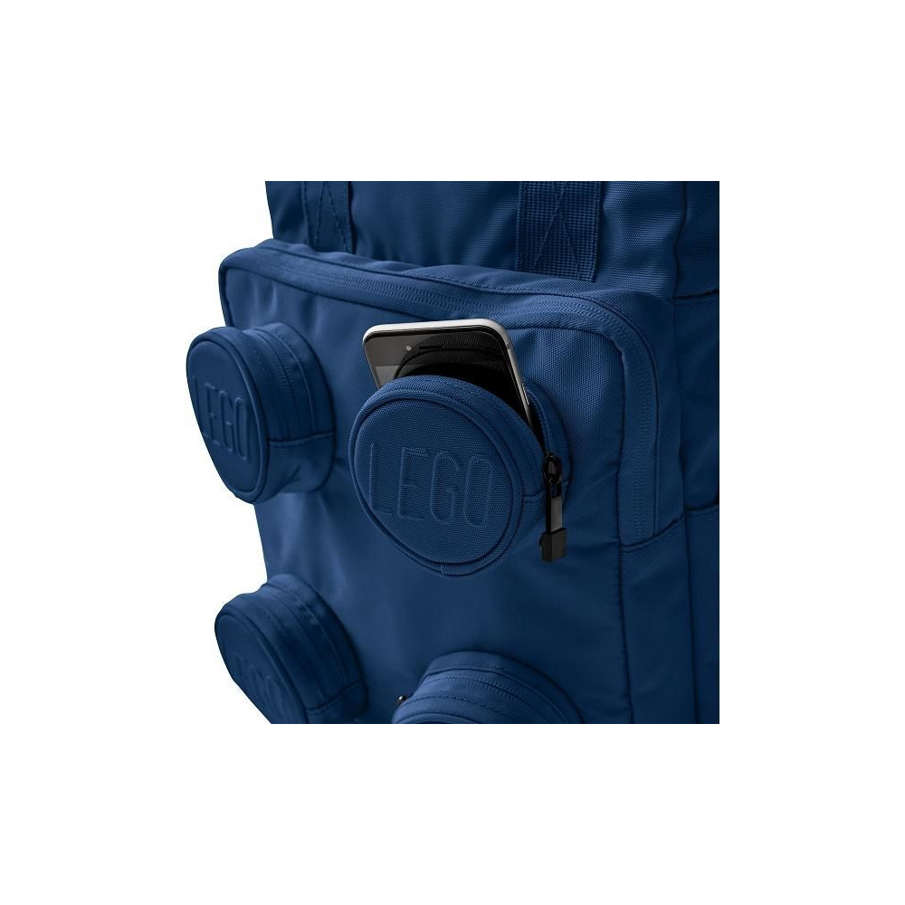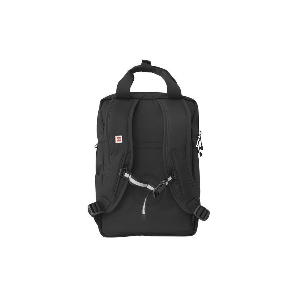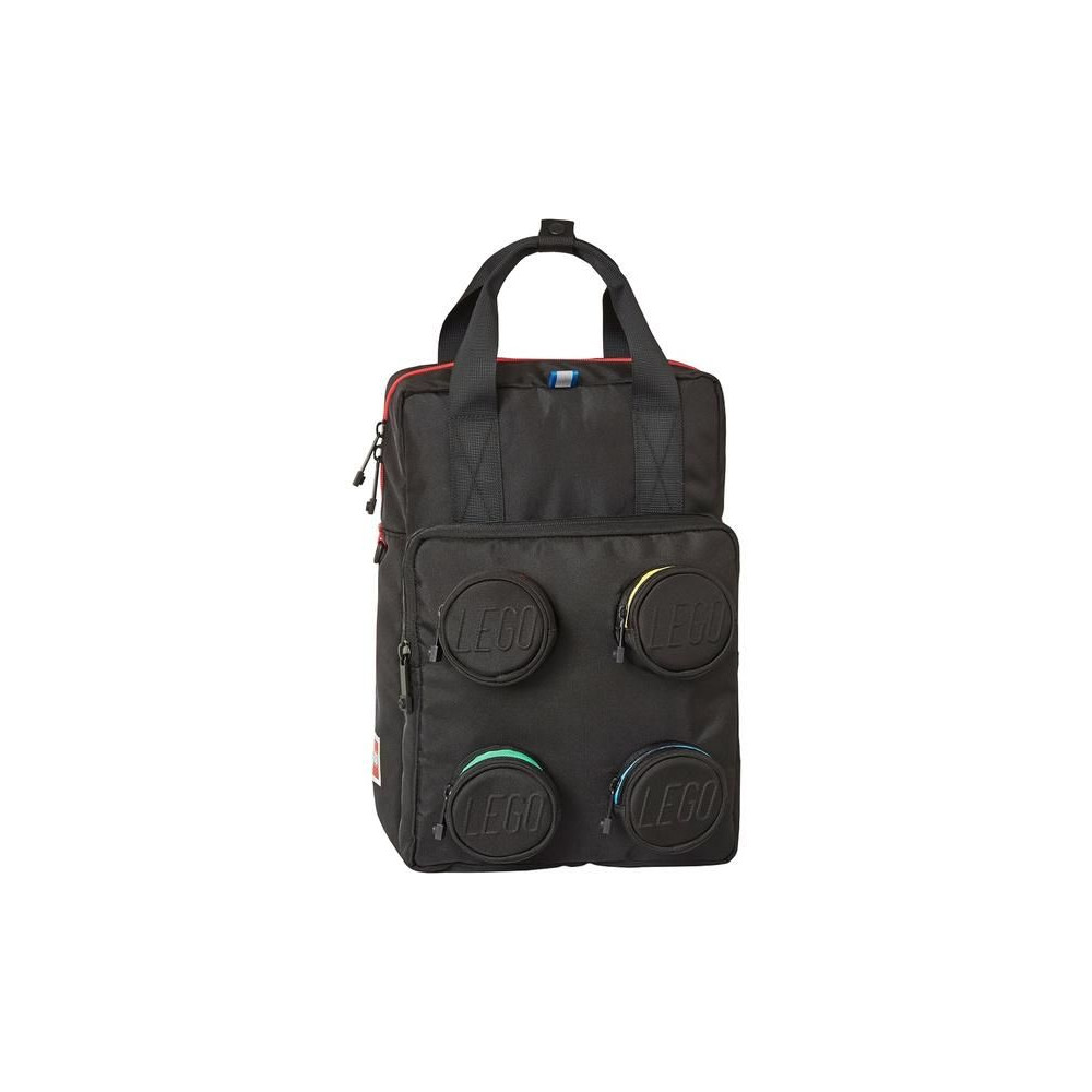 LEGO Signature Brick hátizsák stílusos dizájnnal, ikonikus 2x2-es LEGO kockákból. A hátizsáknak van egy fő zsebe, egy elülső zsebe és kisebb zsebei kör alakú kiemelkedésekben, LEGO logóval. Párnázott vállpántok és mellkaspánt a kényelmes viselet érdekében.