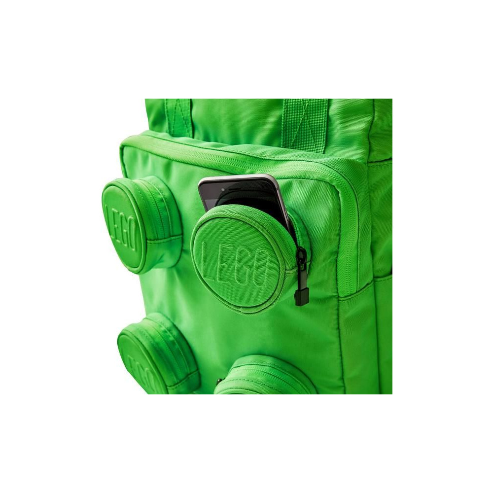 LEGO Signature Brick hátizsák stílusos dizájnnal, ikonikus 2x2-es LEGO kockákból. A hátizsák egy fő zsebbel, egy elülső zsebbel és kisebb, kör alakú kiemelkedésekben elhelyezett zsebekkel rendelkezik, LEGO logóval. Párnázott vállpántok, mellkasi pánt. Méretek: 37 x 25,5 x 15 cm, űrtartalom: 15 liter.