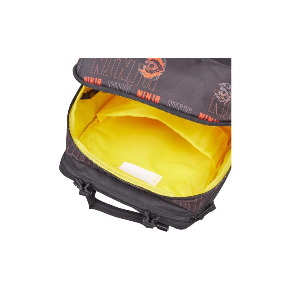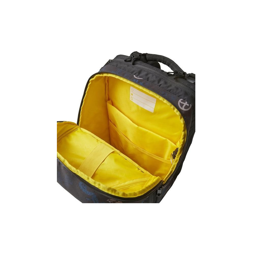 A fő zseb rugalmas pánttal van ellátva, amely a nehezebb tárgyakat, például a tankönyveket, hátul tartja, biztosítva az egyenletes súlyeloszlást.