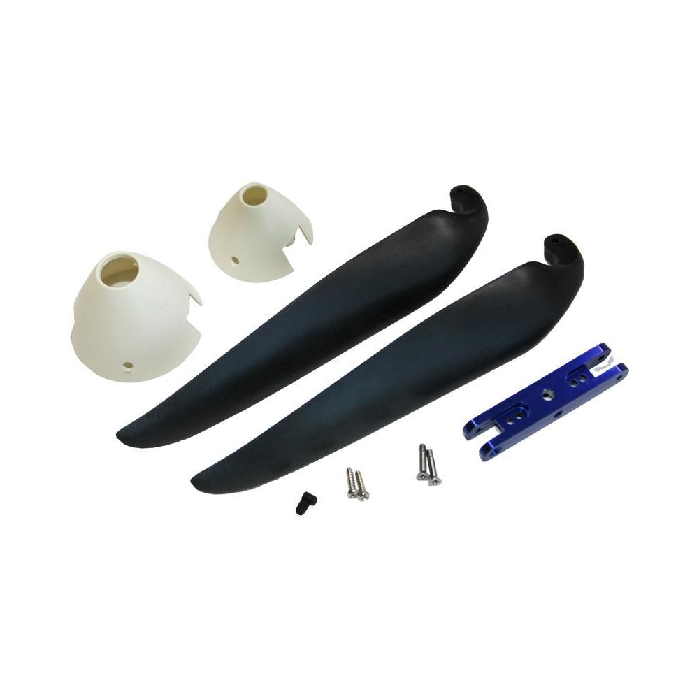 Összecsukható légcsavar RC modell vitorlázórepülőkhöz, légcsavar mérete 12 x 8, lapát anyaga műanyag kompozit magas széntartalommal. 2x fehér kúp 40mm és 32mm átmérővel. Alumínium gerenda 7x10mm, a légcsavar csavarosztása 42mm, a tengely furata 3,2mm.