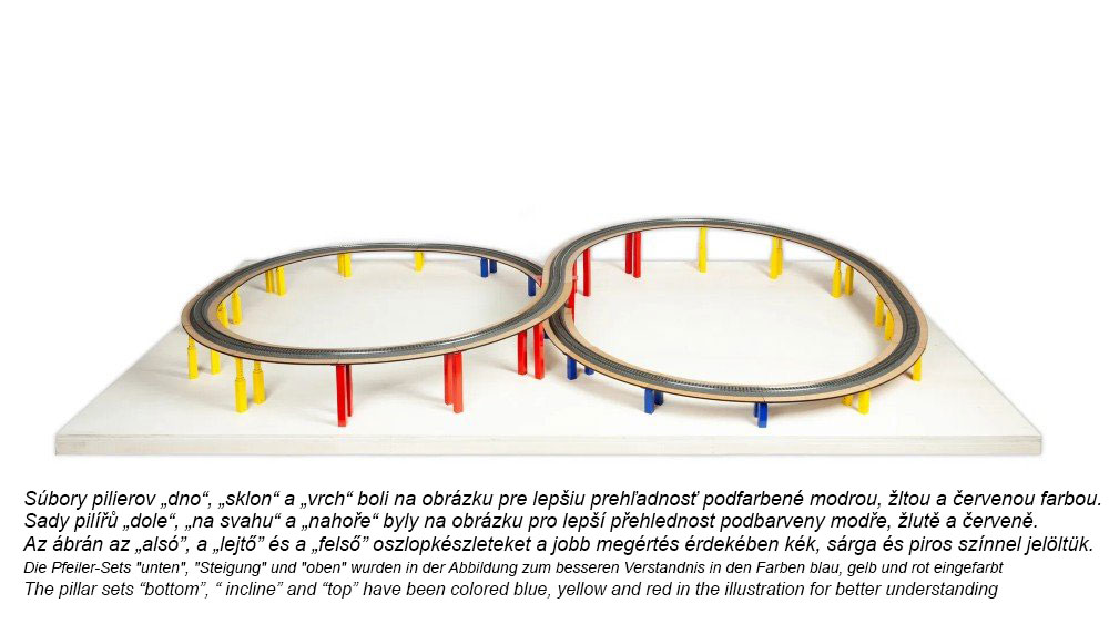 Az előre meghatározott hozzájárulási készletekkel még könnyebbé tesszük a testreszabott rendszerrel való kezdést. Az összefüggő rendszer nemcsak ideális, 8,7 cm-es távolságot biztosít az „alsó easy TRACK oszlopkészlet” és a „felső oszlopkészlet” között, hanem kényelmesen össze is köthető a dönthető készlet segítségével. A lejtőt saját maga is meghatározhatja az egyes oszlopok közötti távolság beállításával. Az alsó oszlopok ideálisak a pályaépítés egyenes és alacsony szakaszainak megvalósításához.