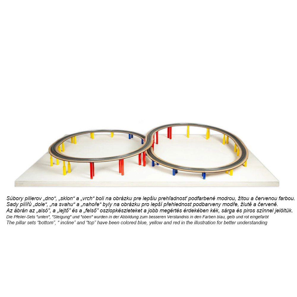 A készlet magasságban állítható oszlopokat tartalmaz, amelyek lehetővé teszik a sínek magasságának 80 mm és 138 mm közötti beállítását az egyéni igényeknek megfelelően. Ezek az oszlopok teljes rugalmasságot garantálnak az Ön egyedi építési projektjéhez! Az oszlopokat egyszerűen az alaplapra kell helyezni, amelyeket már az alaplaphoz csavaroztak. Csavarozhatók vagy ragaszthatók.