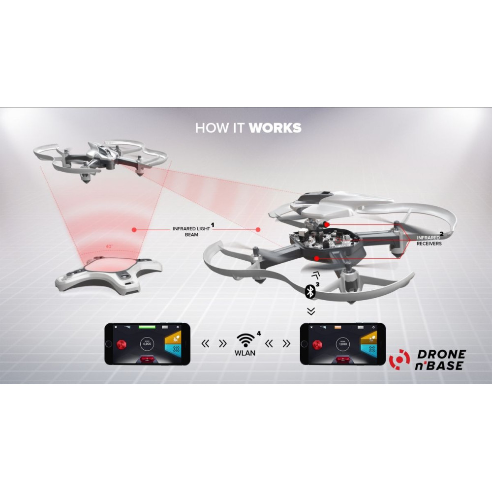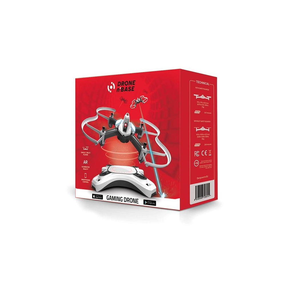 A Drone n Base egy beltéri dron és kifejezetten a játékra lett fejlesztve. Választhatsz a játékmódok között, a kiterjesztett valóság tele lézerlövéssel és robbanásokkal vagy izgalmas versenyt az ellenőrzés és a mentési pontok felett, és ez minden a nappalin belül. A Multiplayer mód minden partyból egy emlékezetes élményt varázsol és órákon át szórakoztatni fog. Játssz a dron-al más játékosok ellen, vagy közvetlenül dron-al szembe. Csak kapcsold be a smartphone-od és kezdhet a játék!