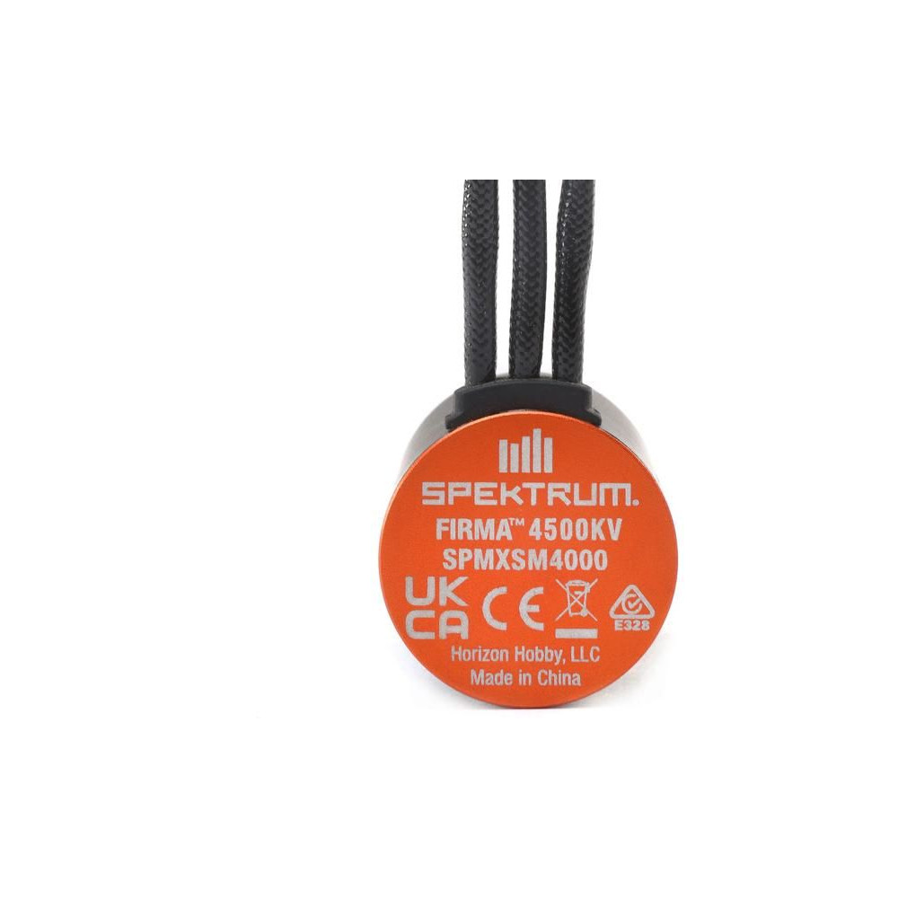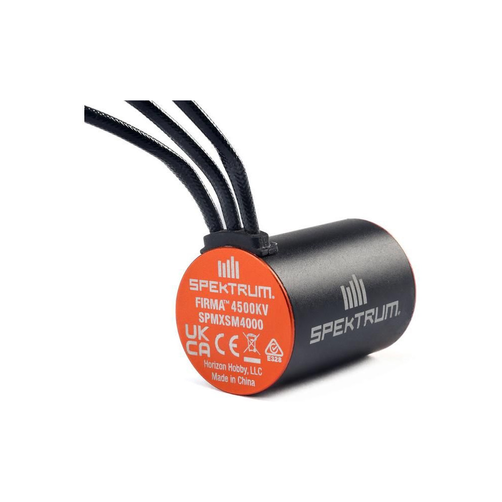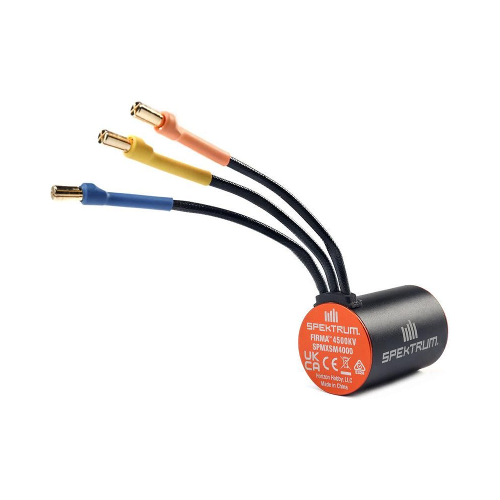 Spectrum kefe nélküli motor Firma 2436 4500ot/V 4P Mini, tengelyátmérő 2mm, RC autó modellekhez 1:16 - 1:18, 2-3S LiPo tápegységgel. Ajánlott vezérlő Company 30A. Méretek ø24x35mm, súly 61g.