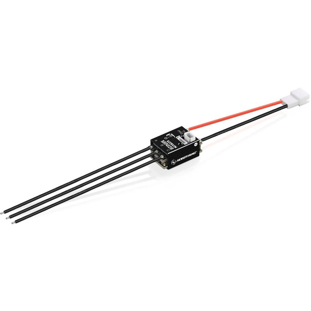 Az EZRUN MINI28 vezérlő mindent kínál, amire szükséged van ahhoz, hogy teljes mértékben kihasználd az 1:28-1:27-es váltakozó áramú motoros távirányítós autód lehetőségeit. Lehetővé teszi érzékelőkkel ellátott (érzékelős) és érzékelők nélküli ("érzékelő nélküli") váltakozó áramú motorok használatát, és 26 programozható paraméter széles skáláját kínálja, amelyek korábban csak a professzionális XERUN sorozatra voltak jellemzőek, a motor, az alváz és a pálya tökéletes illesztéséhez. Szóval, ha komolyan gondolod, hogy a felfújt "Minizet"-edet AC motorral vezesd, akkor a Hobbywing EZRUN MINI 28 vezérlője neked való!