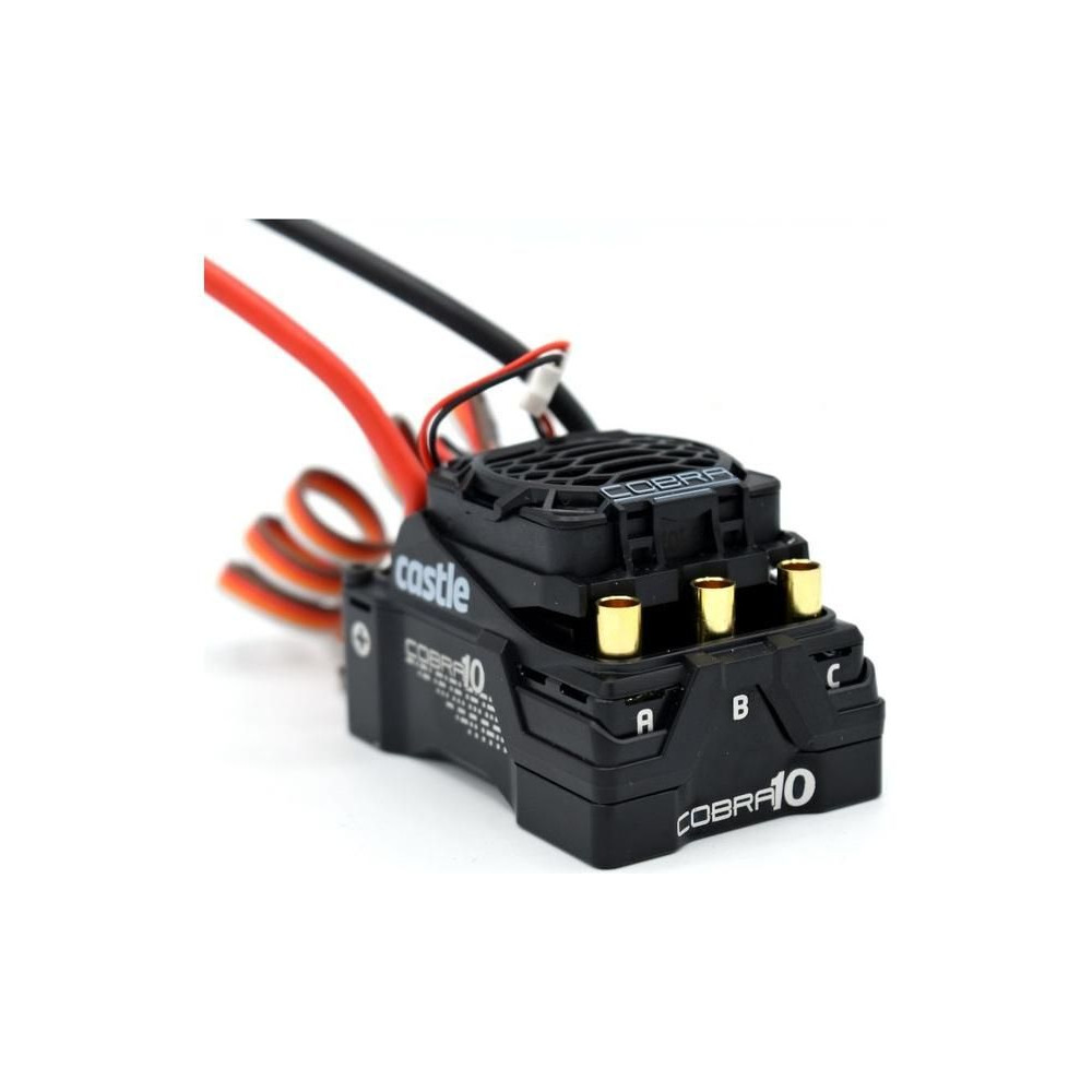 Nagy teljesítményű Castle Cobra 10 sebességszabályozó, 1:10 méretarányú, maximum 3,2 kg-os RC autómodellekhez, vagy 1:8 méretarányú, terepjárásra alkalmas, maximum 4,1 kg-os modellekhez. Tápegység 2-6S LiPo, állítható BEC 5-8V (max. terhelés 8A). A szabályozót a nulláról újra tervezték, és a csúcstechnológiás elektronikát számos szoftveres fejlesztéssel ötvözi. A forradalmi CRYO-DRIVE technológia növeli az elektronika hatékonyságát és csökkenti annak hőmérsékletét. A pontosság és a teljesítmény új korszakát egy kétmagos, 32 bites mikrovezérlő biztosítja. Egyenáramú motor, váltakozó áramú motor és váltakozó áramú érzékelőmotor csatlakoztatható a vezérlőhöz.
