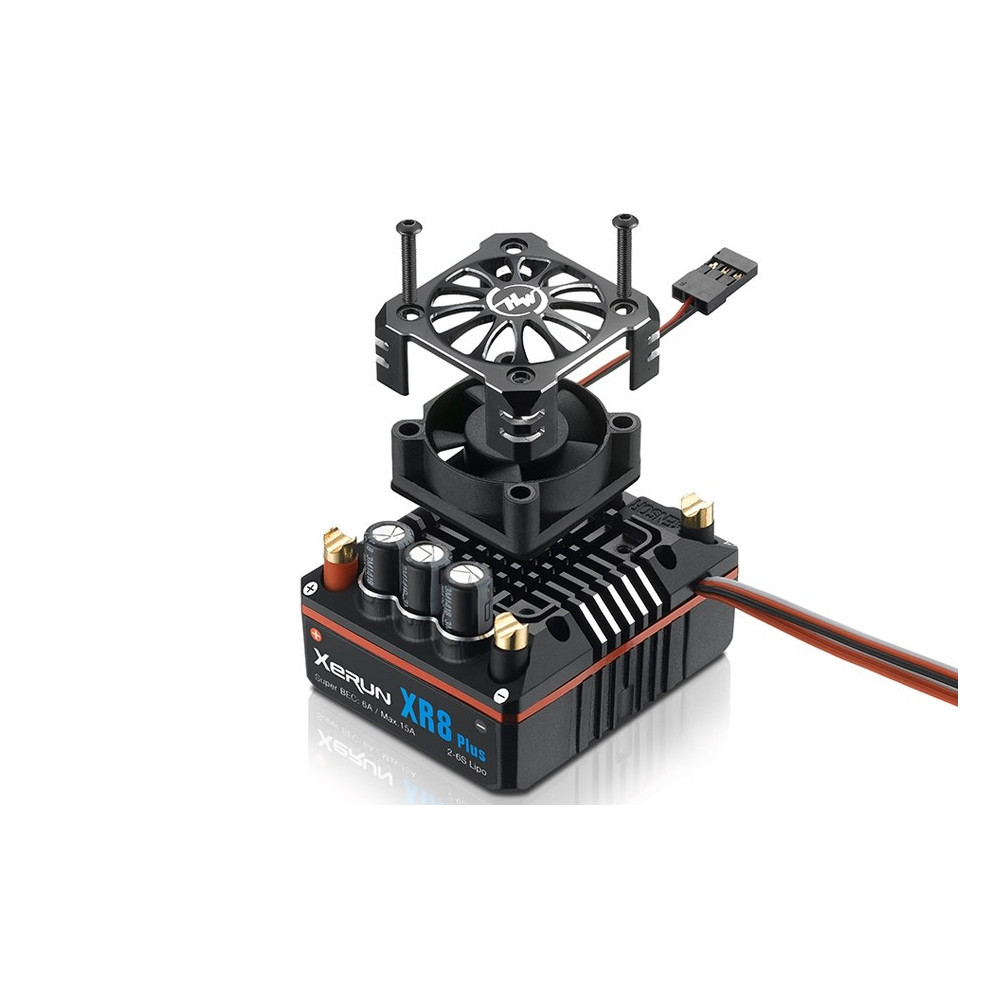 Az XR8 PLUS a világ első olyan 1/8 ESC regulátor, amely integrálja a HV beépített BEC-et a kimeneti árammal 15 A-ig és kapcsolható kimeneti feszültséggel 6 V-7.4 V.