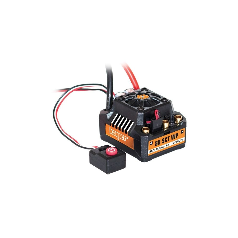 Ez az elektronikus váltóáramú sebességszabályozó ideális 1/10 méretarányú járművekhez, ha terepre vagy más akcióba kell menni. Nem számít, hogy Buggy, Short Course, Stadium Truck vagy Truggy a Konect WP80SL vezérlővel (melyet a piacvezető HobbyWing gyárt) maximális vezetési élményt, Mega teljesítményt és nulla problémát biztosít.