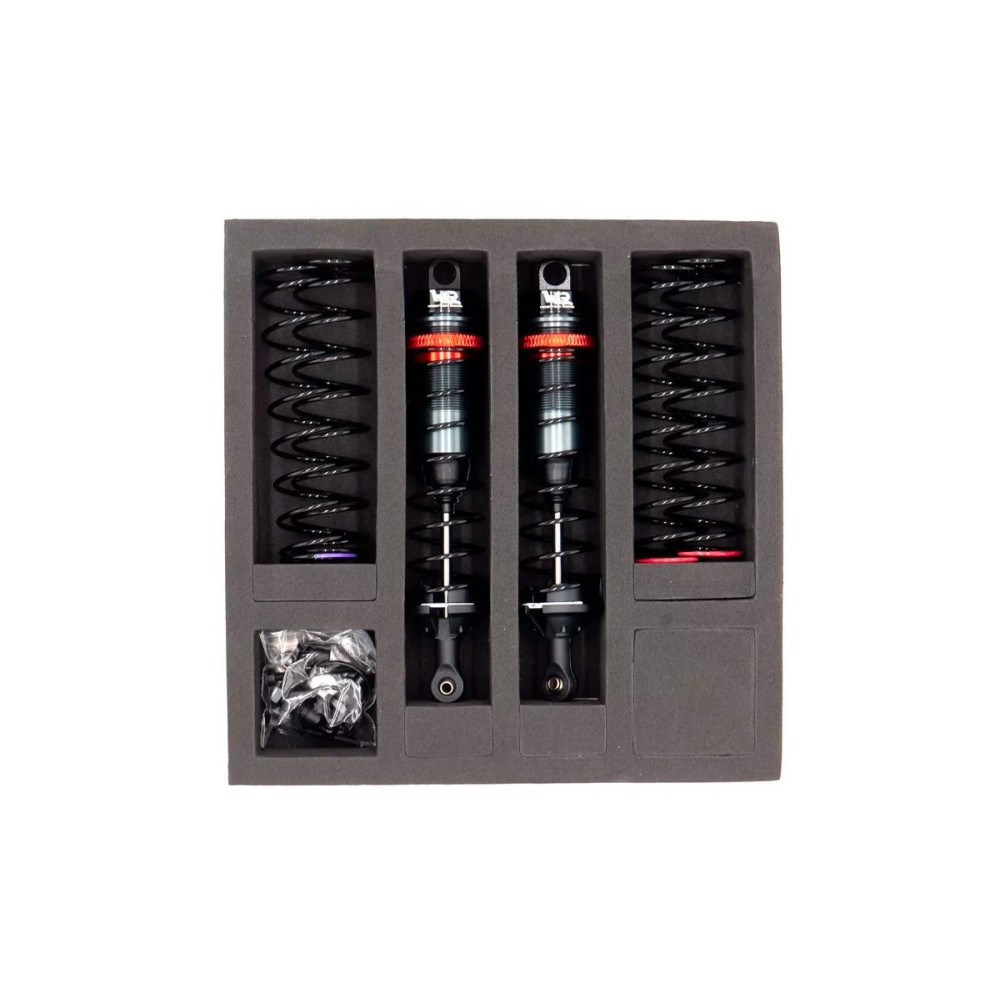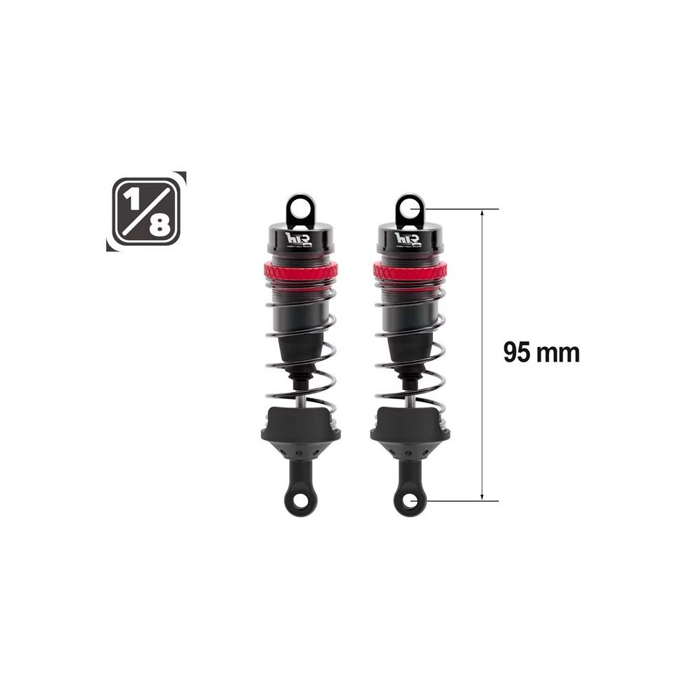 Teljesen alumínium olajütközők 1/8 és hasonló modellekhez, a csapok közötti teljes hossz 95 mm, a dugattyú átmérője 16 mm. A készlet tartalmazza: három pár rugót: lágy, közepes és kemény; felső és alsó rögzítőanyag.