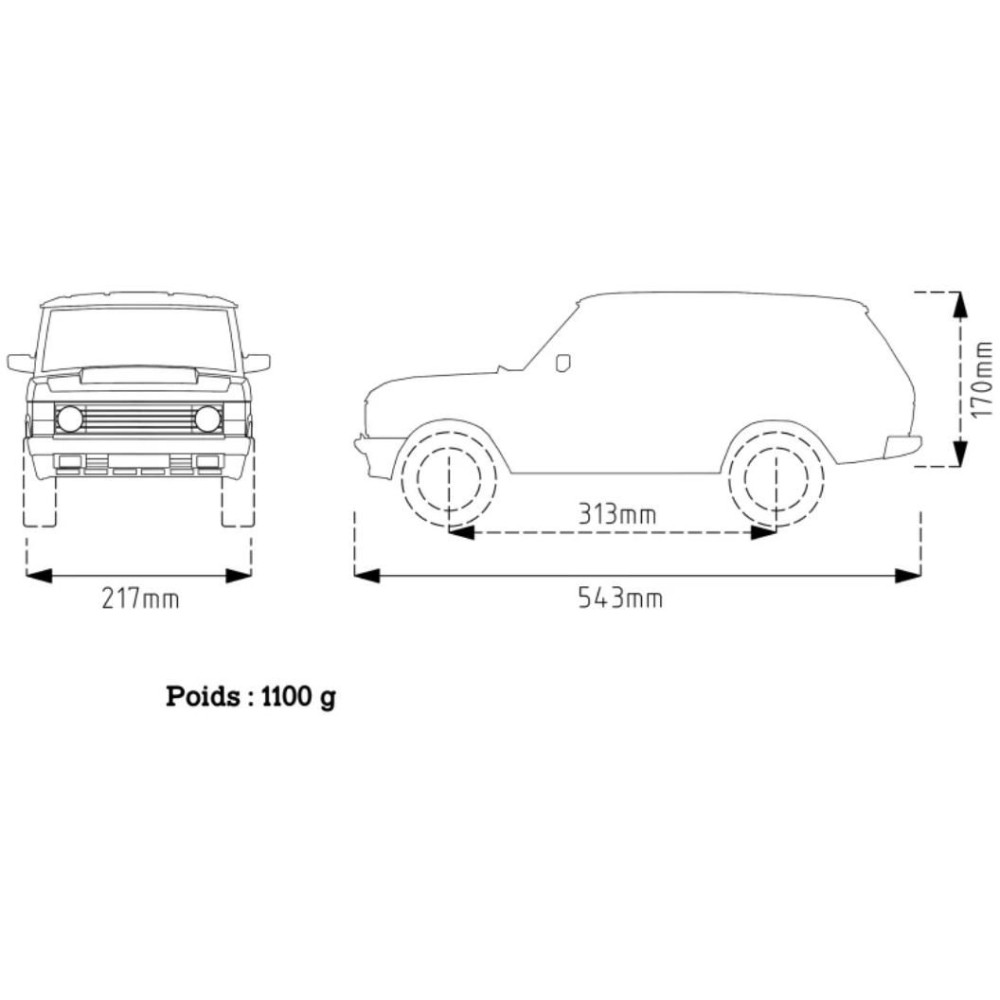 Merev ABS karosszéria 1:10 méretarányban, 313 mm-es tengelytávval a híres brit autó alapján.