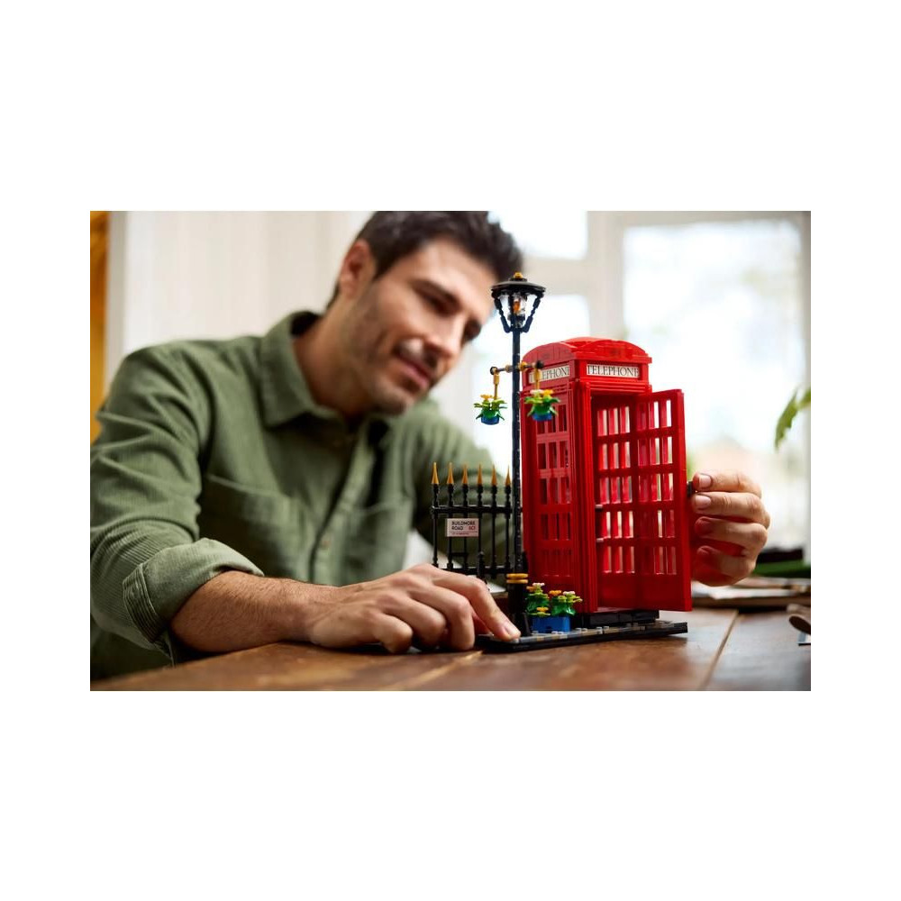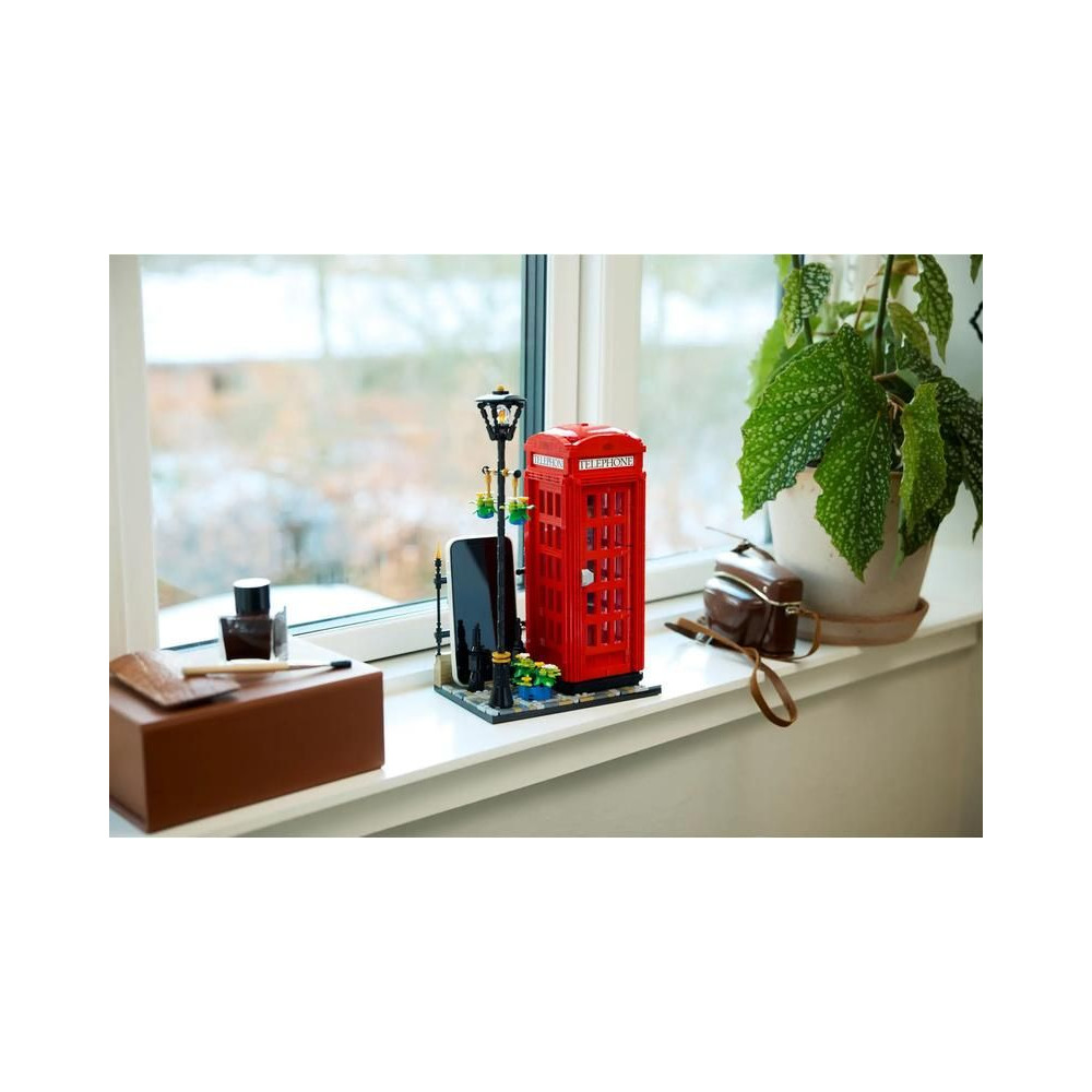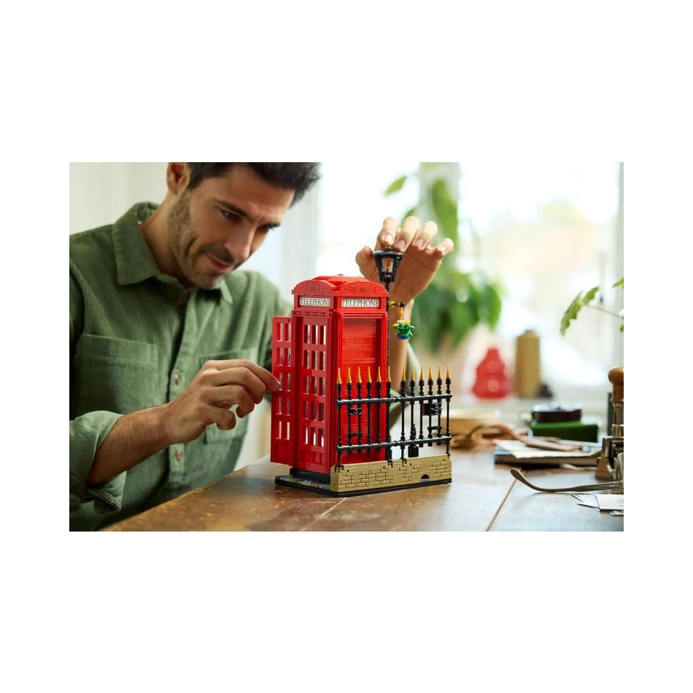 A gyűjthető, felnőtteknek szánt LEGO® Ideas építőkészlet fülkéje egy lenyűgöző londoni látvány központi eleme, melyhez egy megépíthető macskaköves utca, függő virágkosarakkal ellátott lámpa, virágcserep és utcatáblával ellátott kerítés tartozik. A kiállítási modell egy bájos dekoráció, amely otthonra és irodába egyaránt alkalmas, és telefonállványként is használható.