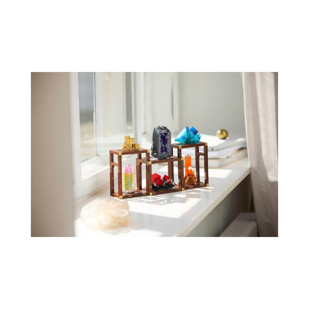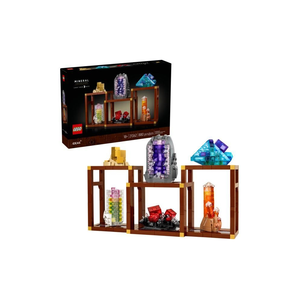 - Egyedi lakberendezési tárgy – Tiszteld a természet szépségét a LEGO® Ideas Ásványgyűjtemény építőkészlettel, amely 6 ásvány és 3 polc színes modelljét tartalmazza.