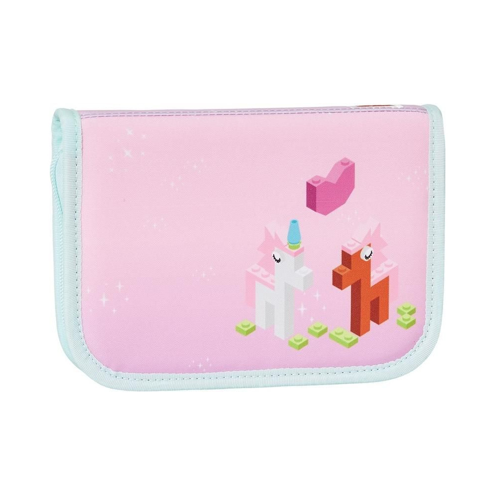 A LEGO témájú utántöltő tok tartalmazza az összes szükséges írószert az iskolában. A tok 2 grafitceruzát, 10 színes ceruzát, 4 széles színes zsírkrétát, radírt, ceruzahegyezőt, egyenes és háromszögletű vonalzót tartalmaz. A tokban található egy órarend egy átlátszó zsebben és egy bevarrt belső névtábla. Tartós, PVC-mentes anyagból készült. Ideális az általános iskola első évfolyamára.