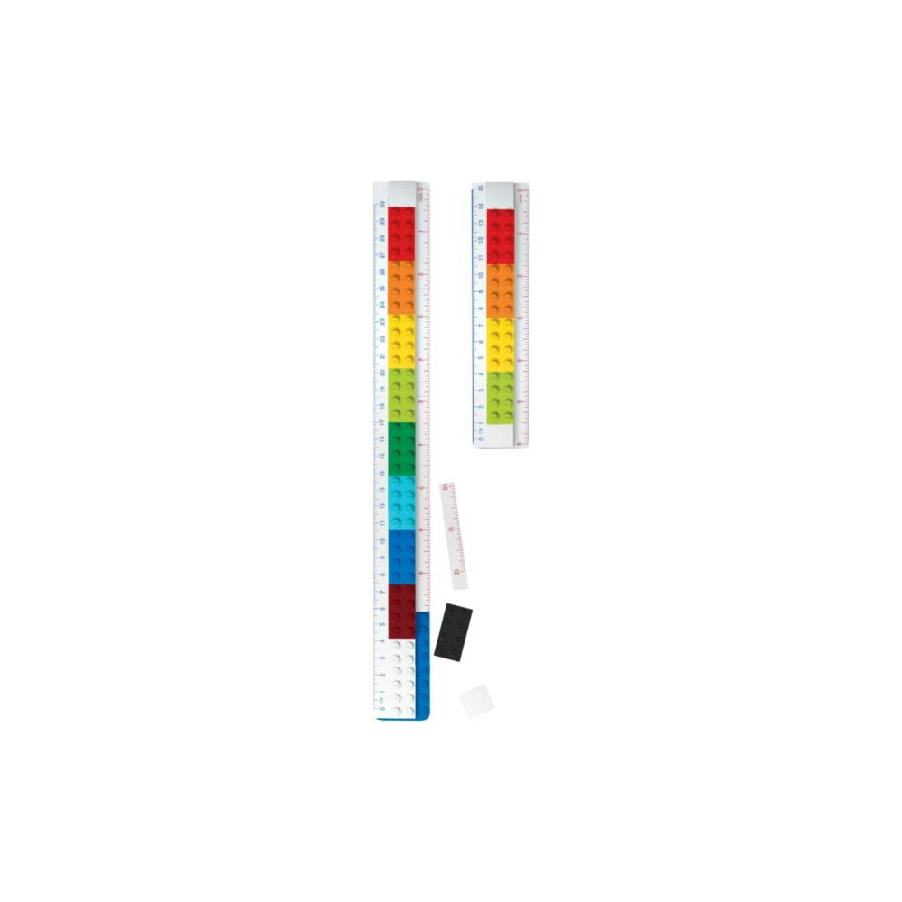 15/30 cm hosszú LEGO vonalzó építőkészlet, LEGO minifigurával együtt, csomagban. Az utasítások szerint a vonalzót könnyedén, játékos módon, igényeid szerint állíthatod össze, két lehetséges hosszúságban. A csomag színes LEGO párnákat tartalmaz, amelyekkel ceruzát, hegyezőt vagy esetleg kedvenc LEGO minifigurádat rögzíthetsz a vonalzóra. A vonalzónak két beosztása van - cm-ben és hüvelykben.