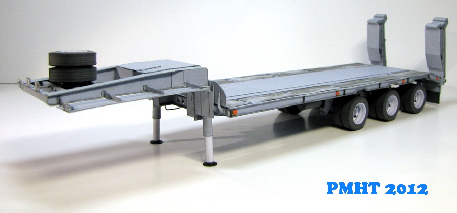 Model 3-nápravového nízkonákladového návesu Zremb N25-31, ktorý sa používa na prepravu ťažkých strojov.