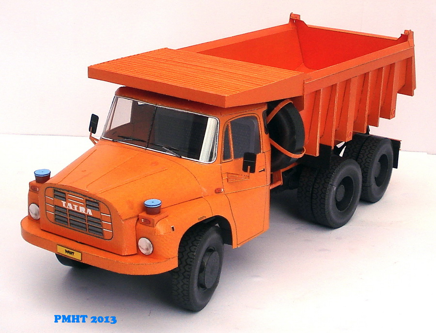 Model jednostranného sklápacieho vozidla - Tatra 148 S1 6x6 v žiarivo oranžovej farbe.