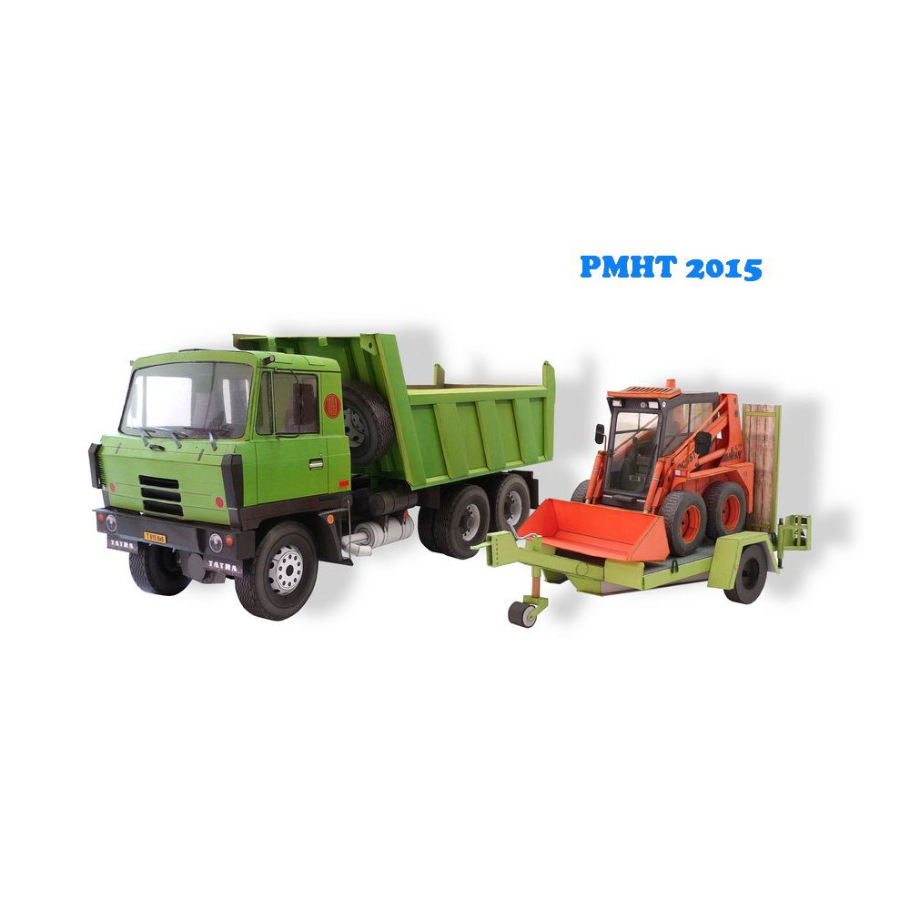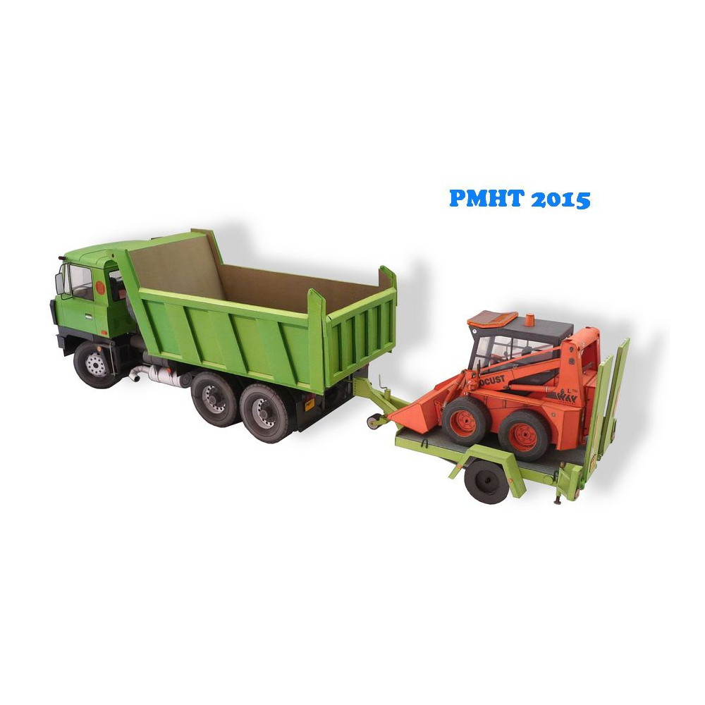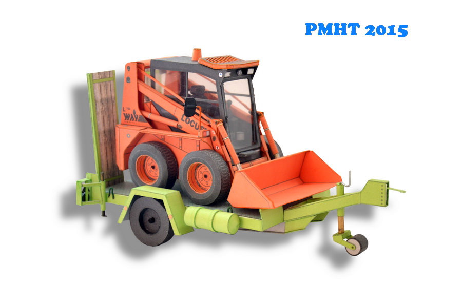 Model malého stavebného stroja Locust L752 s prívesom na prepravu