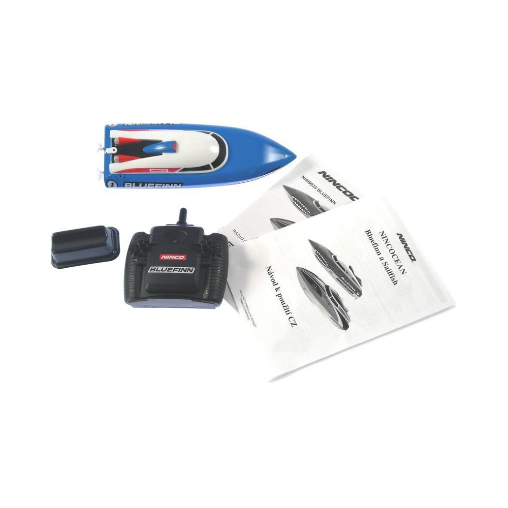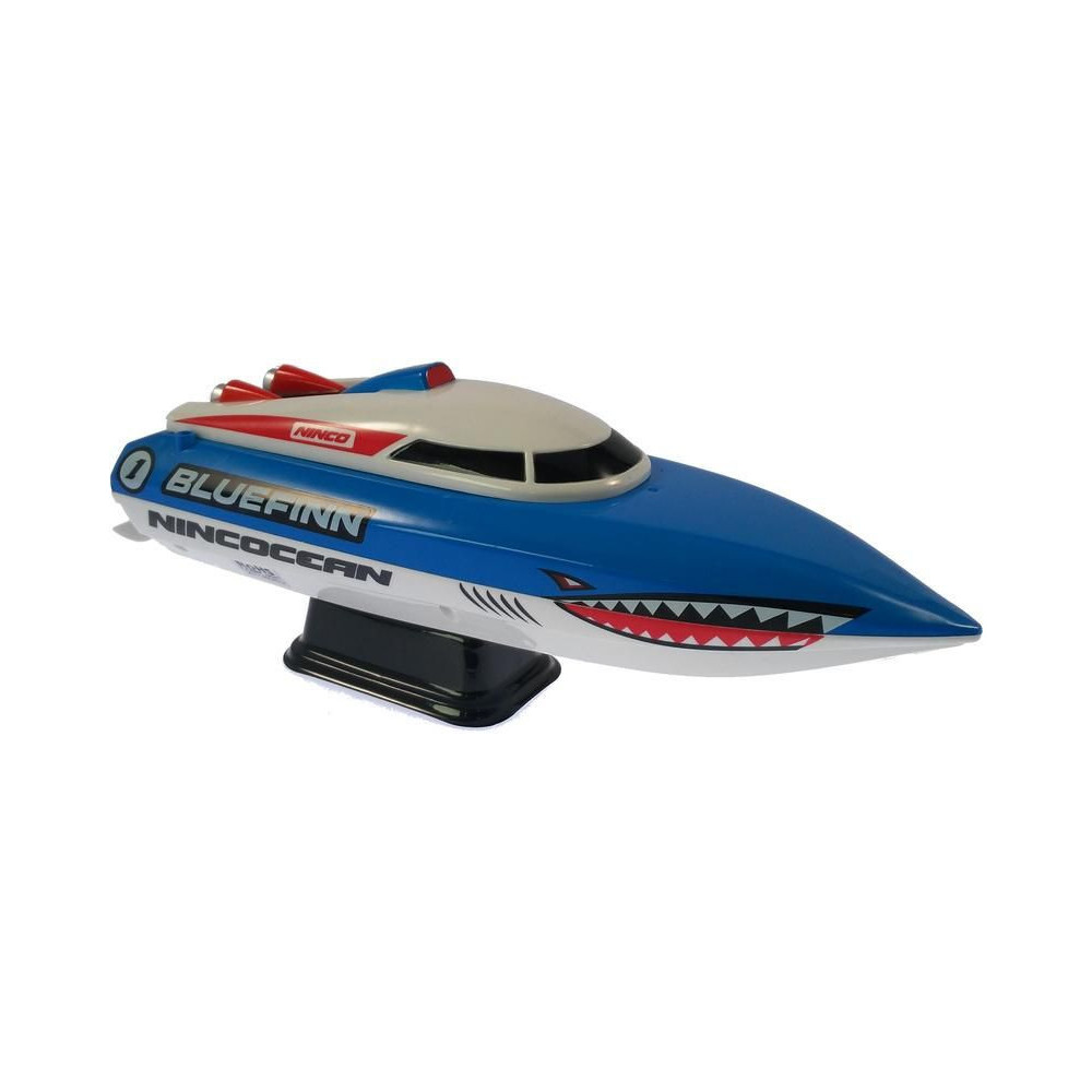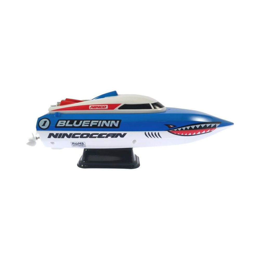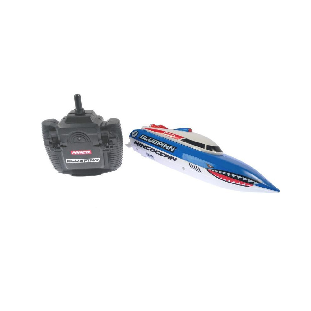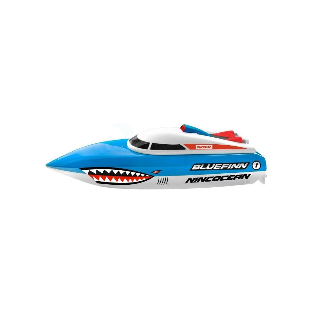 Gyorsan fordulj meg, és forrald fel a vizet! Egy nagyszerű NINCOCEAN Bluefinn távirányítós hajó, amely gyors és nagyon mozgékony. Ez egy hajó klasszikus cápaszáj motívummal. 2,4 GHz-es adó. Működés ceruzaelemekkel.