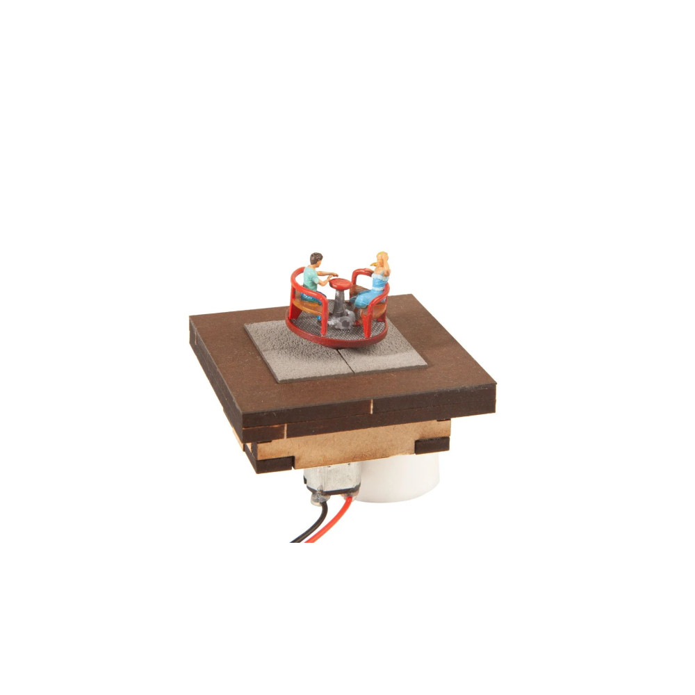 Ručne maľované vybavenie detského ihriska a modely figúrok sa dodávajú kompletne zostavené. Každé zariadenie je poháňané motorom, ktorý je umiestnený priamo pod modelom (montážna hĺbka 35 mm). Mechanizmus na pohon sa dodáva ako stavebnica. Dodávaná elektronika sa dá pripojiť k štandardnému 16 V transformátoru modelovej železnice a je vhodná na striedavý aj jednosmerný prúd. Rýchlosť zariadenia detského ihriska sa dá nastaviť na doske plošných spojov.