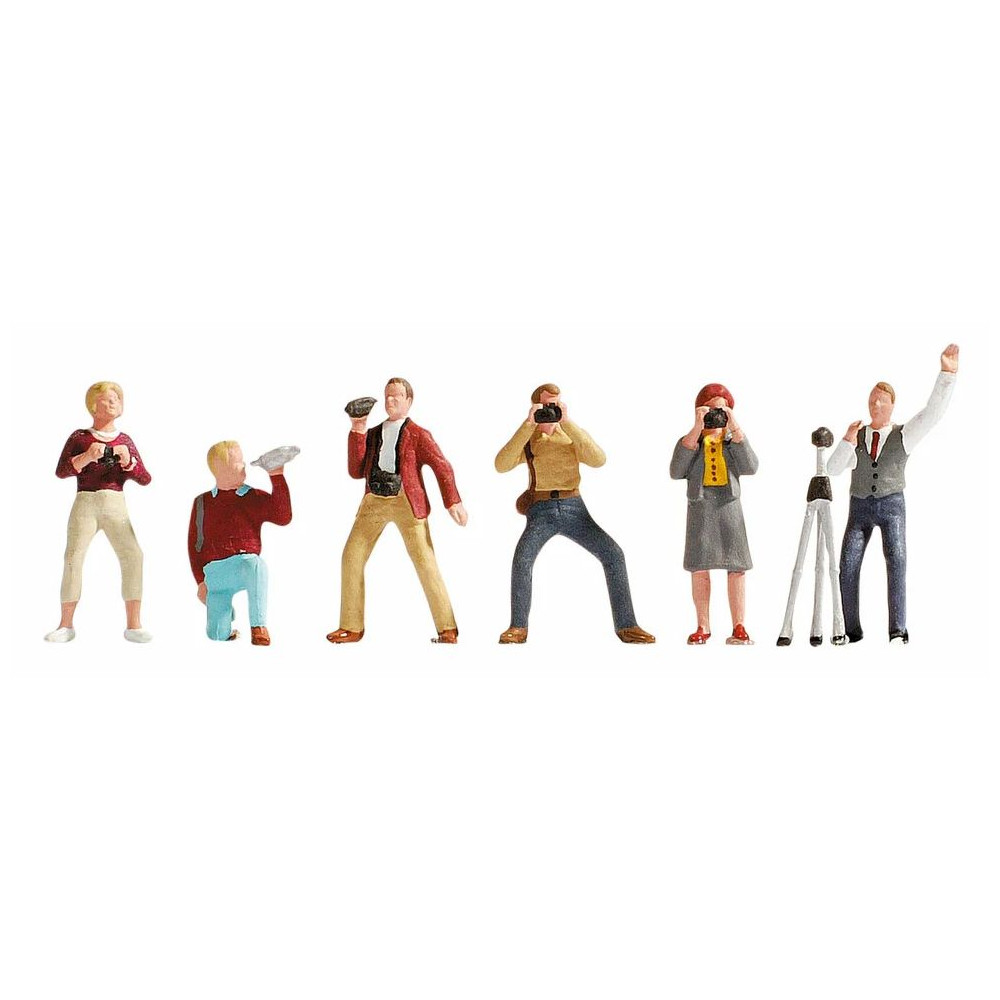 Sada pre rozchod H0 obsahuje päť stojacich fotografov a jedného kľačiaceho (mierka 1:87, výška cca 2 cm).