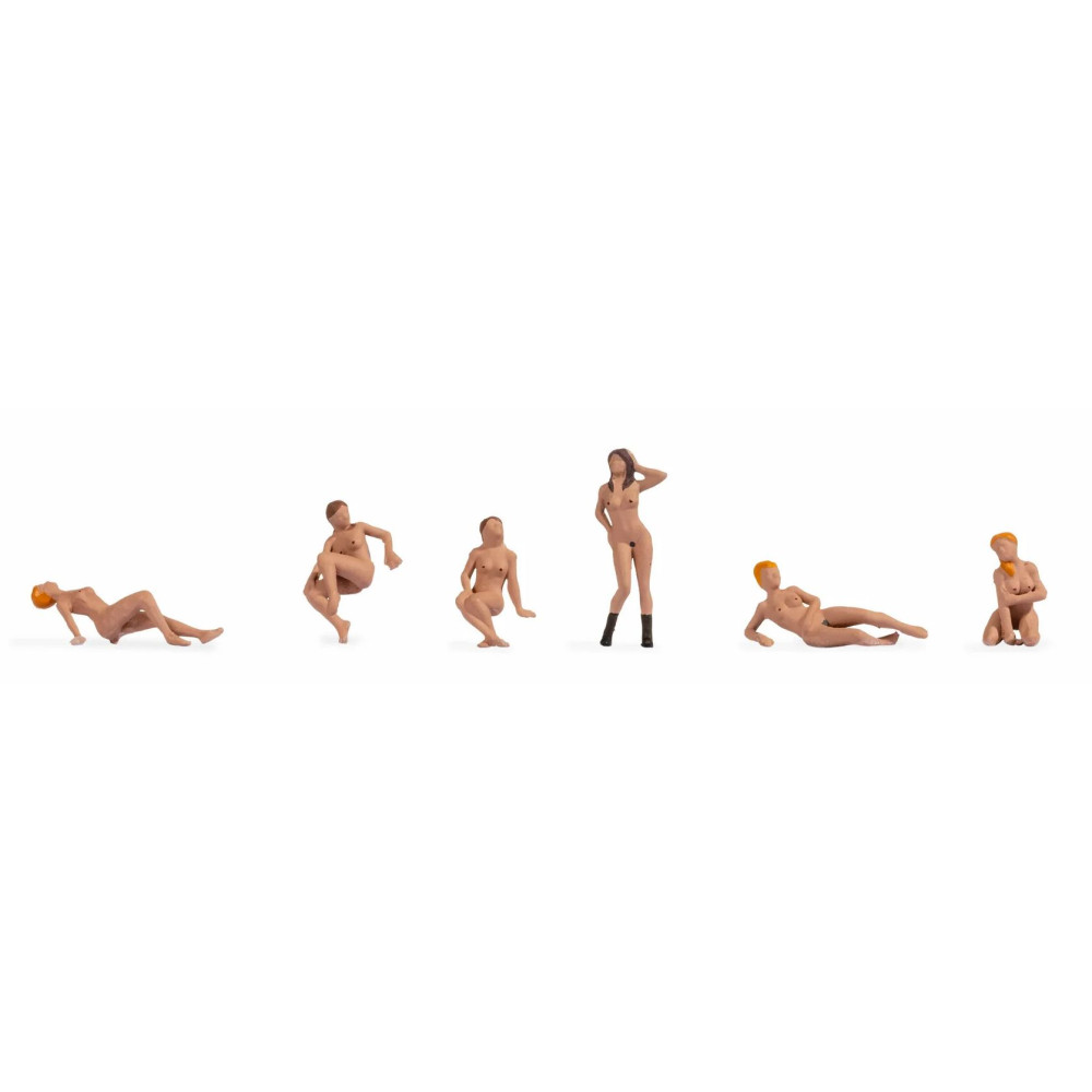 Sada figúrok "Nahé modelky" obsahuje 6 figúrok. Sú medzi nimi dve ležiace, dve sediace a dve stojace postavy, ktoré samozrejme pózujú umelcovi. Jedna stojaca modelka má obuté čierne čižmy, inak sú ostatné postavy bosé. Majú rôzne farby a dĺžky vlasov, od čiernych cez hnedé až po blond.