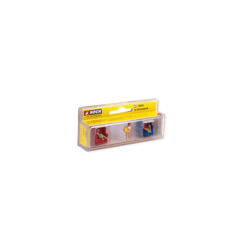 Súprava figúrok v mierke H0 obsahuje dve plážové lehátka a štyri osoby v plavkách. Jeden pár sedí pohodlne v koši a pre väčšie pohodlie má vysunuté opierky na nohy. Žena s rozpustenými vlasmi drží v ruke plážovú loptu a jednu ruku si opiera o bok. Jej spoločník sedí pohodlne v plážovom kresle a jednou rukou ukazuje na pláž. S touto sadou figúrok môžete vytvárať realistické dovolenkové scény s veľkým dôrazom na detaily.