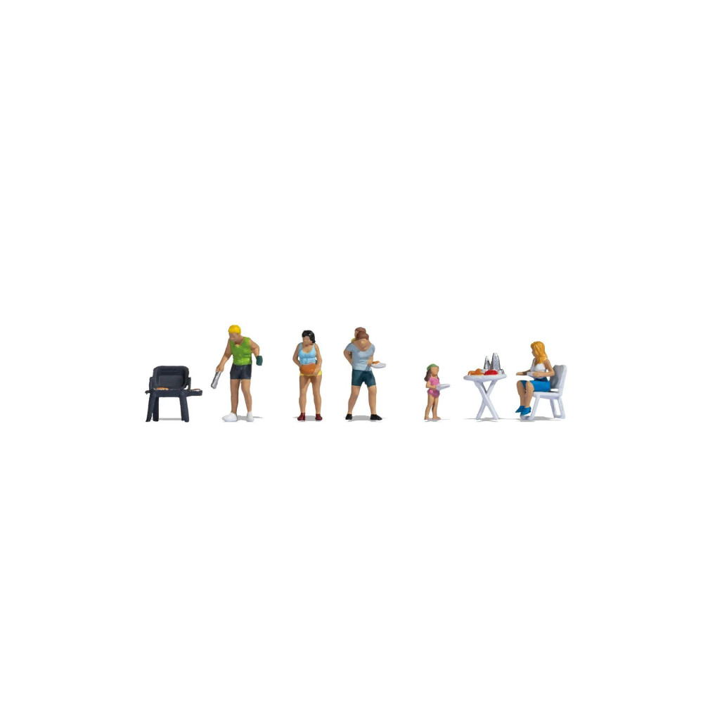 Súprava figúrok v rozchode H0 obsahuje šesť osôb a zodpovedajúce príslušenstvo na tému kempovanie. Dve rodiny spolu strávia pohodový obed v kempe. Samozrejmosťou je grilovanie v čase obeda. Otecko stojí pri grile s grilovacími kliešťami, zatiaľ čo jeho hladná dcéra stojí vedľa neho a čaká, kým bude jedlo konečne hotové. Žena prináša taniere na stôl, kde sa už usadila druhá mama a pripravuje riad. Fľaše na pitie, poháre a ďalšie náčinie sú už na stole. Otec nesie na chrbte svojho šťastného syna a v ruke drží ďalšie taniere. Spoločne si užívajú nádherný deň.