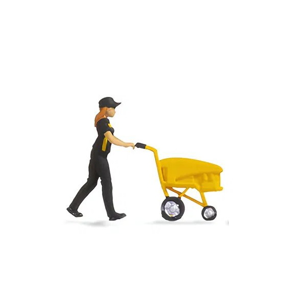 Ebben a jelenetben egy postásnő látható, aki tipikus fekete-sárga felsőjét és egy banditasapkát visel. Egy tipikus sárga postai furgont tol maga előtt, amiben szétosztásra szánt levelek vannak.